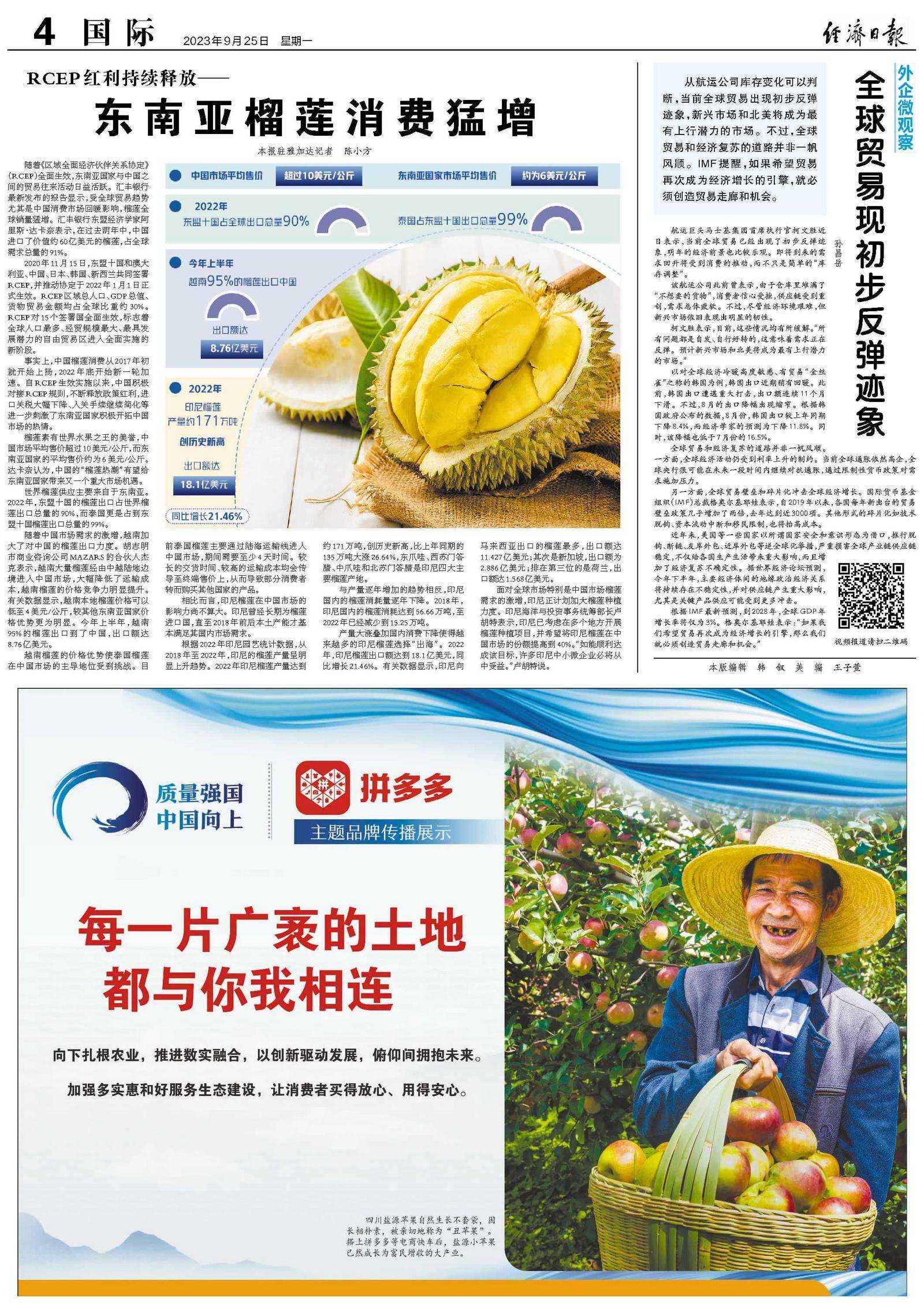 东南亚榴莲消费猛增