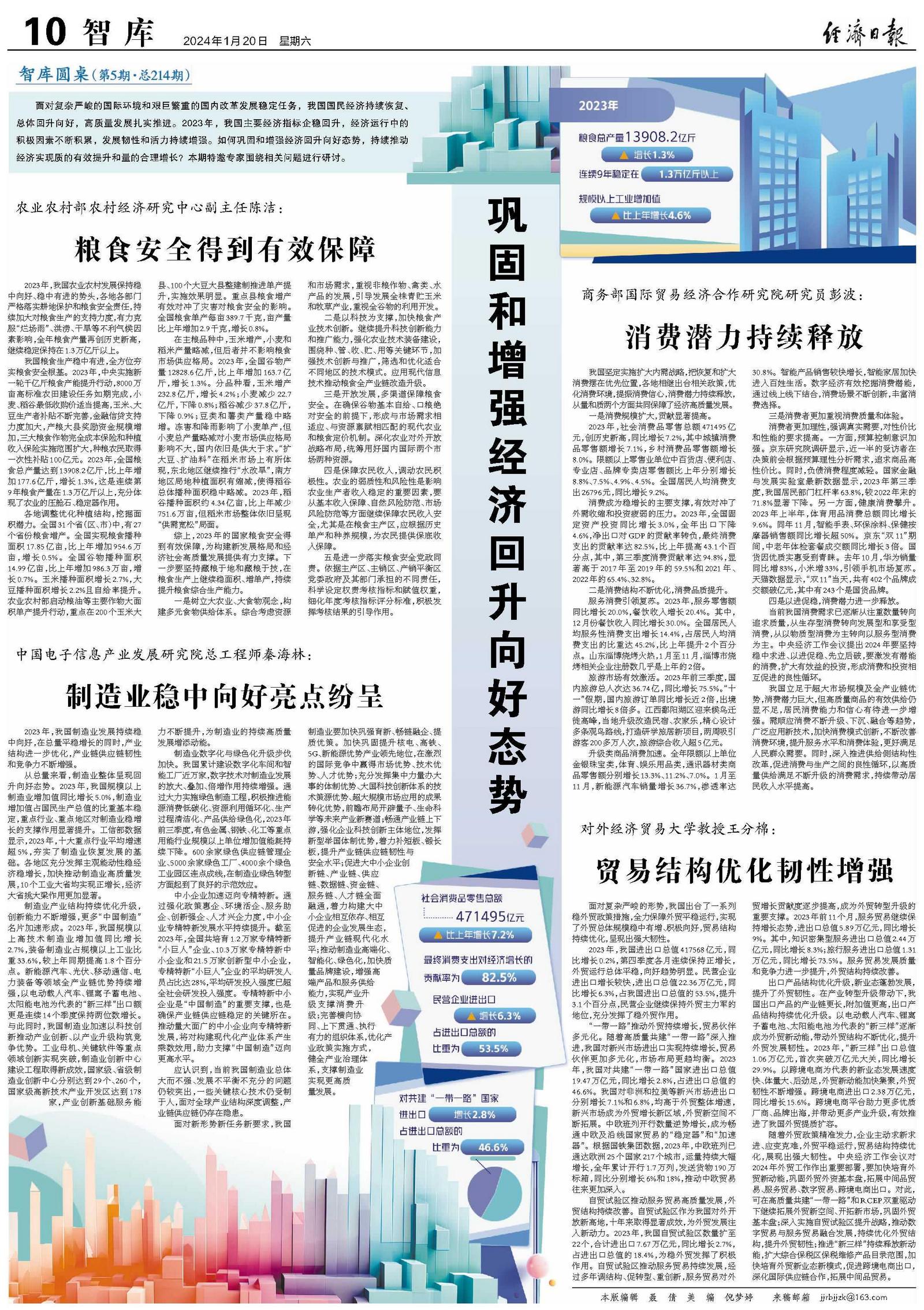 巩固和增强经济回升向好态势