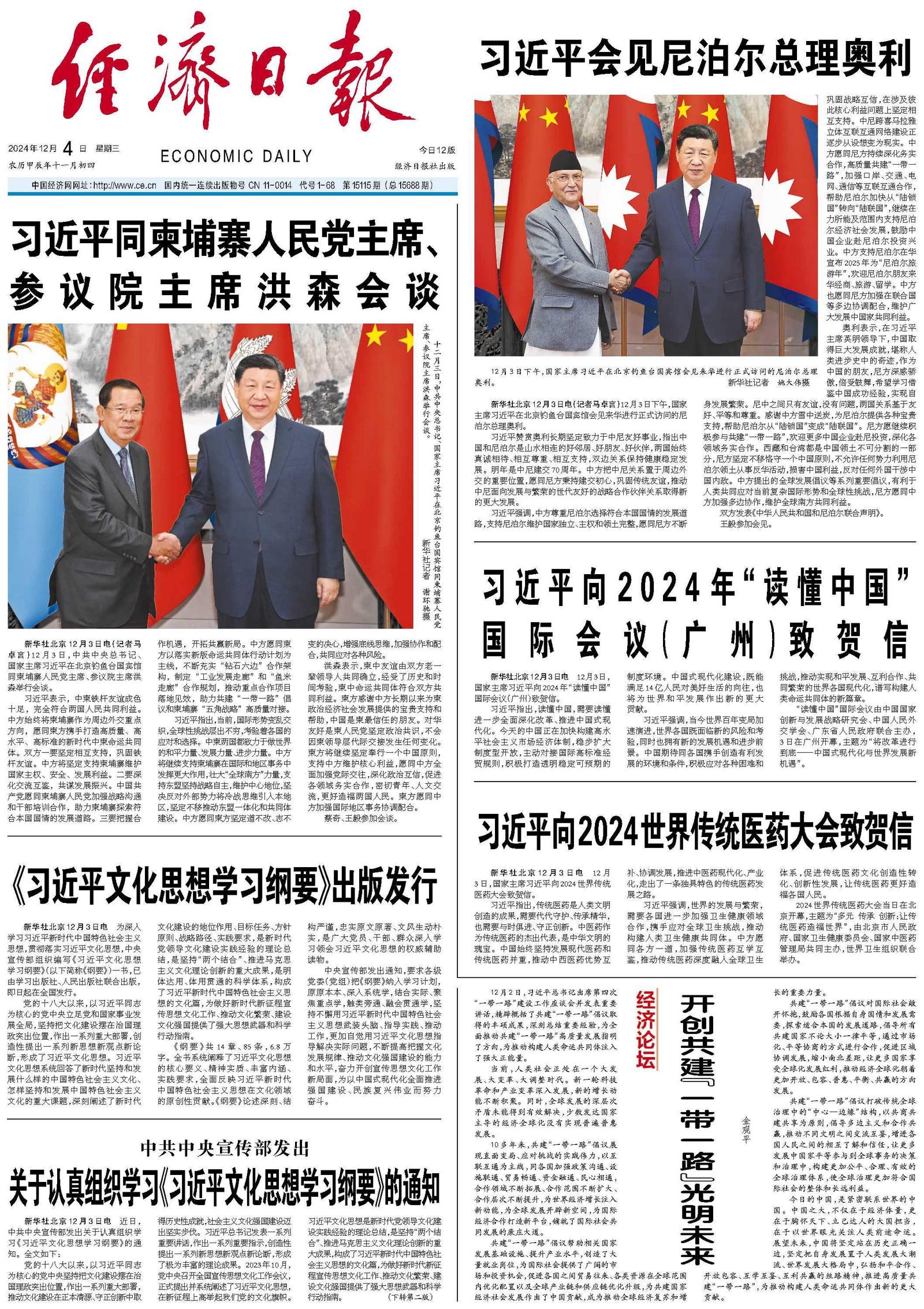 习近平向2 0 2 4年“读懂中国”国际会议(广州)致贺信
