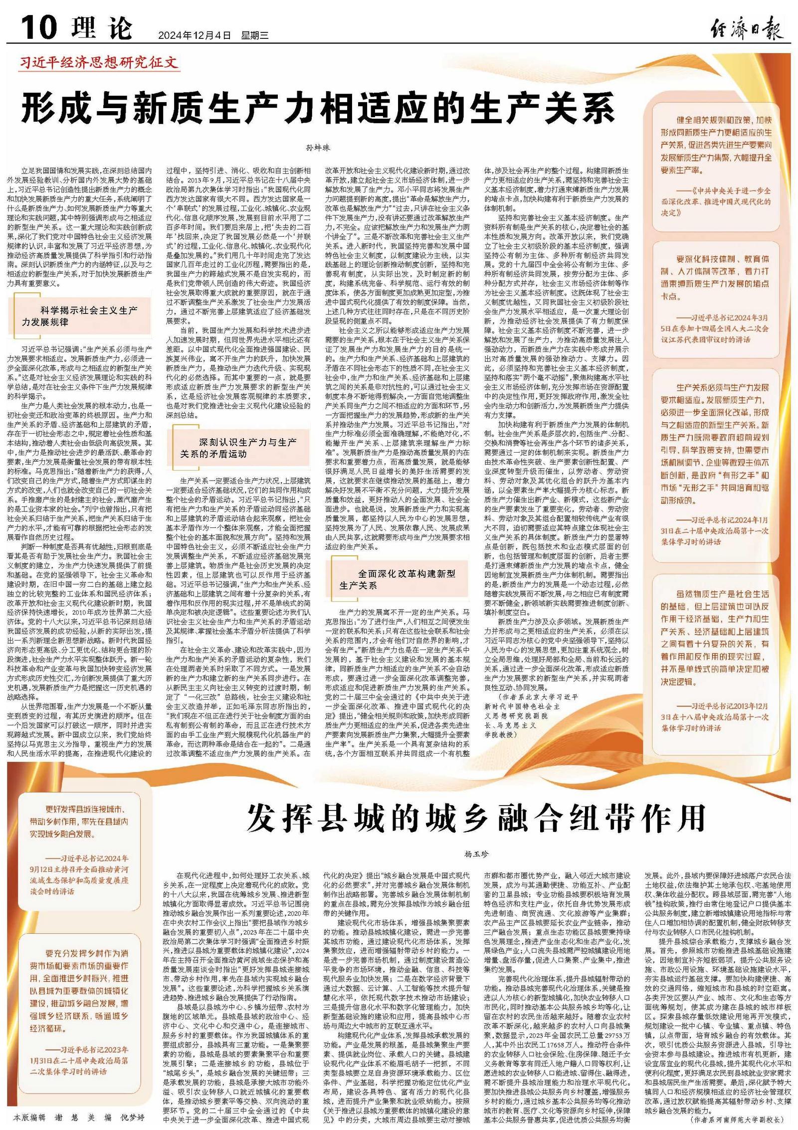形成与新质生产力相适应的生产关系