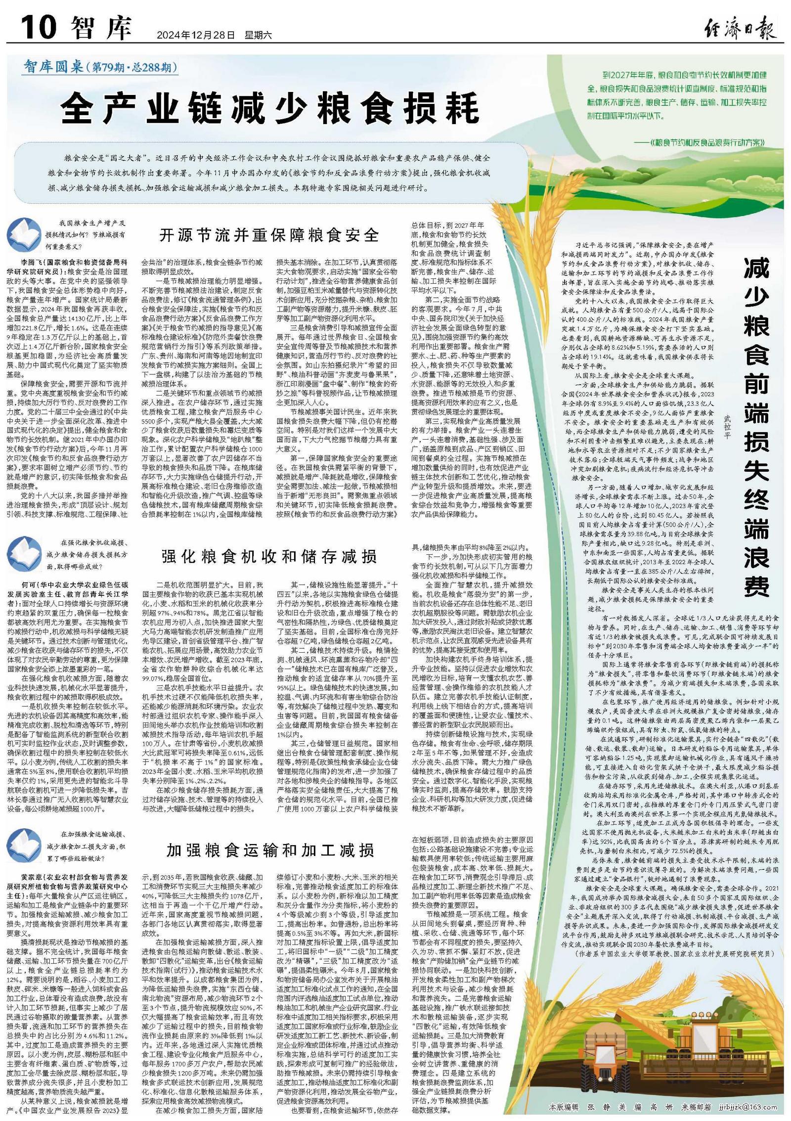 减少粮食前端损失终端浪费