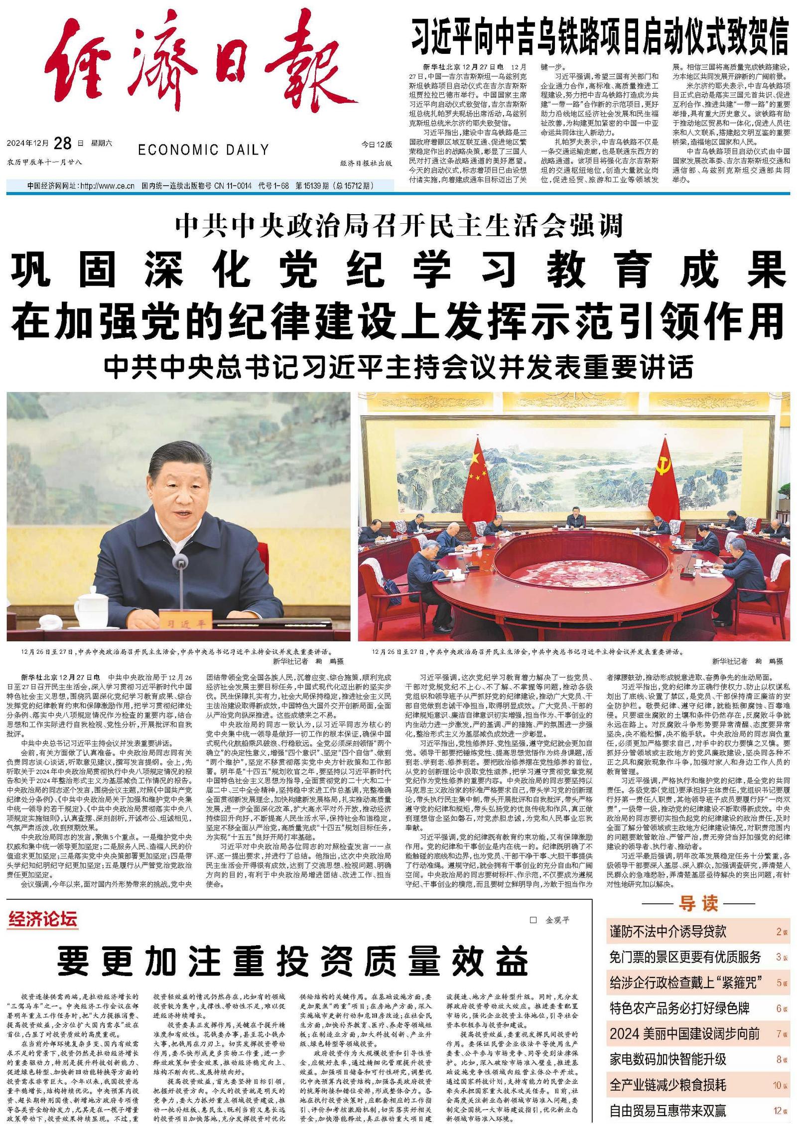要更加注重投资质量效益