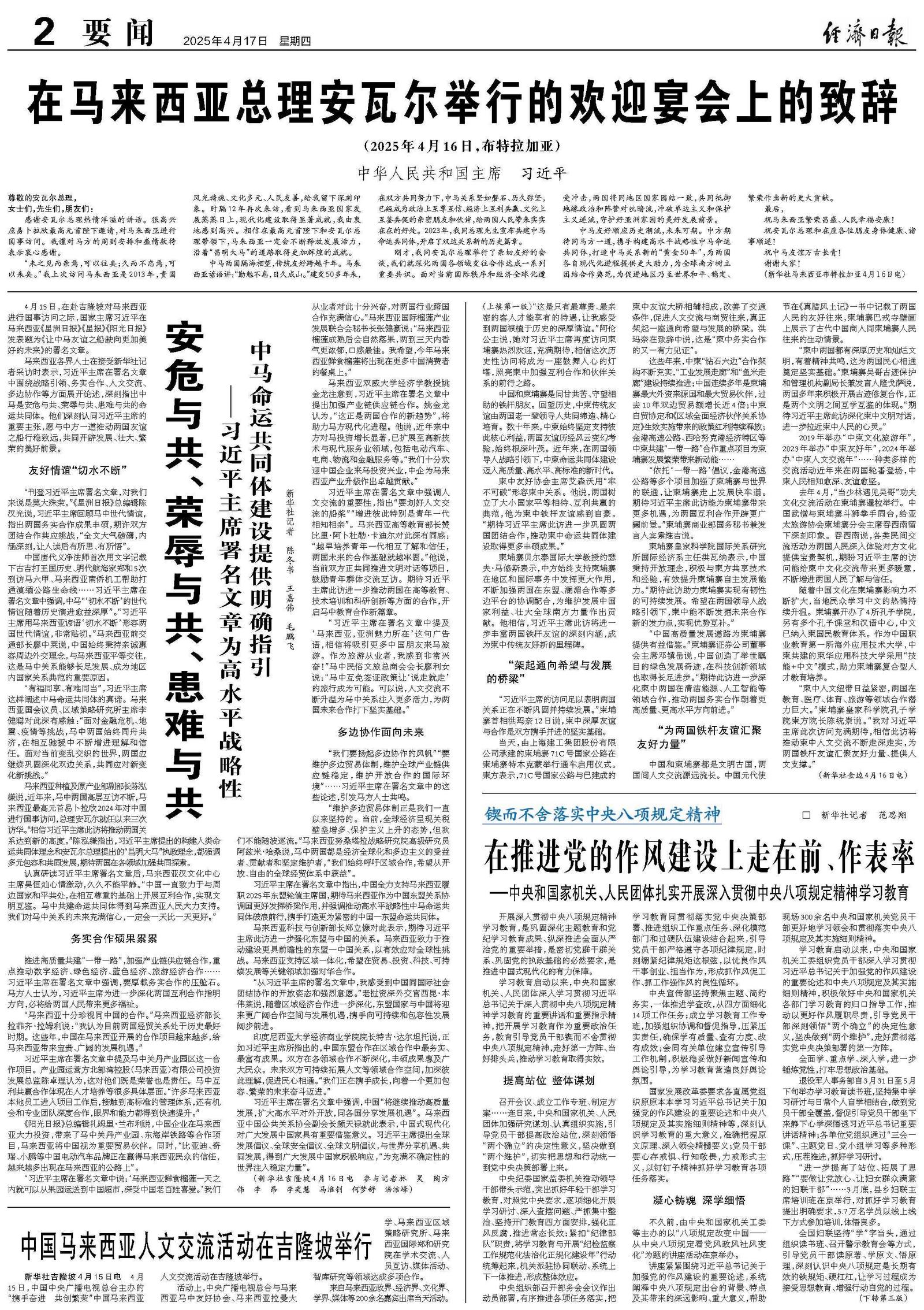 在马来西亚总理安瓦尔举行的欢迎宴会上的致辞