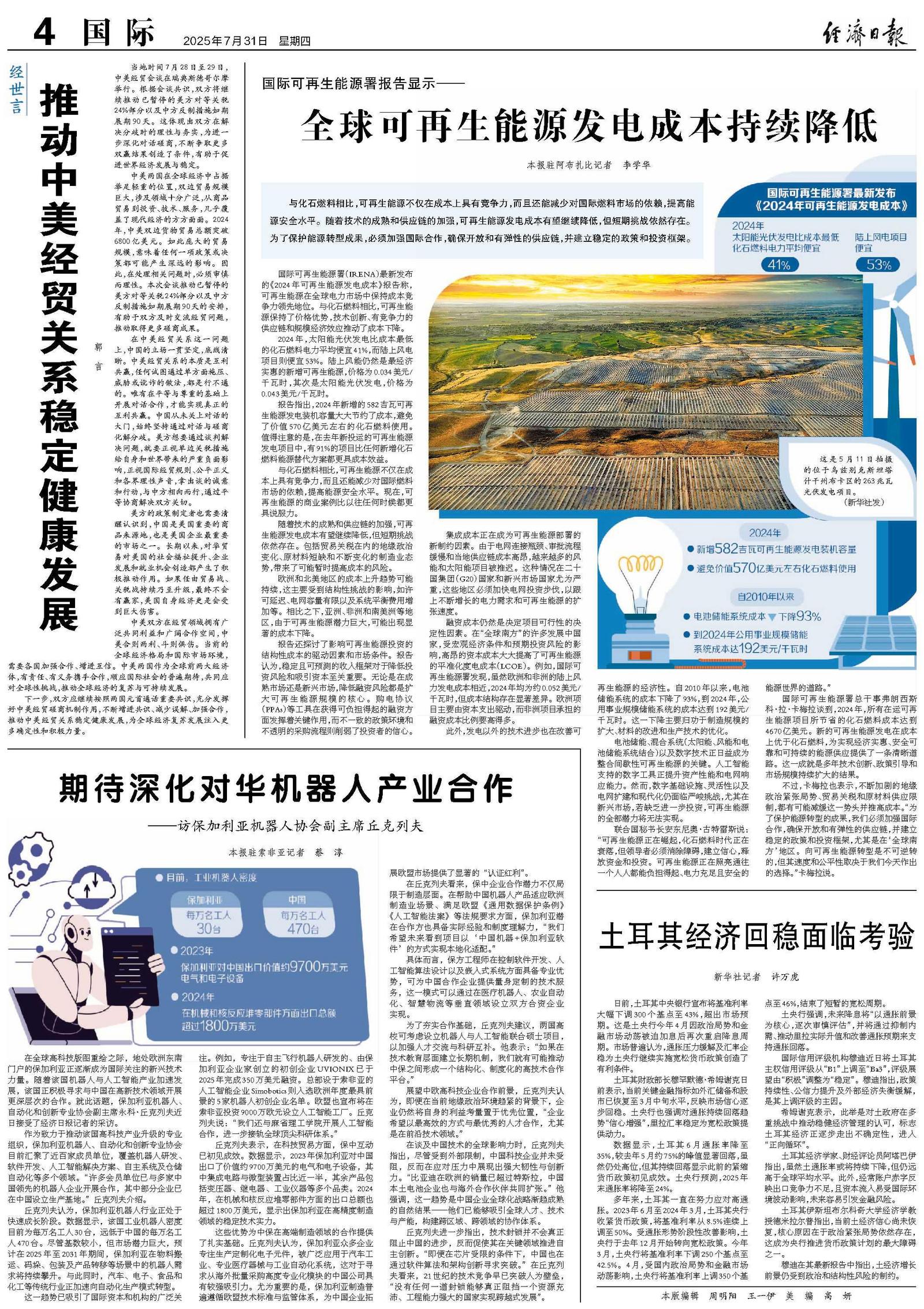 期待深化对华机器人产业合作