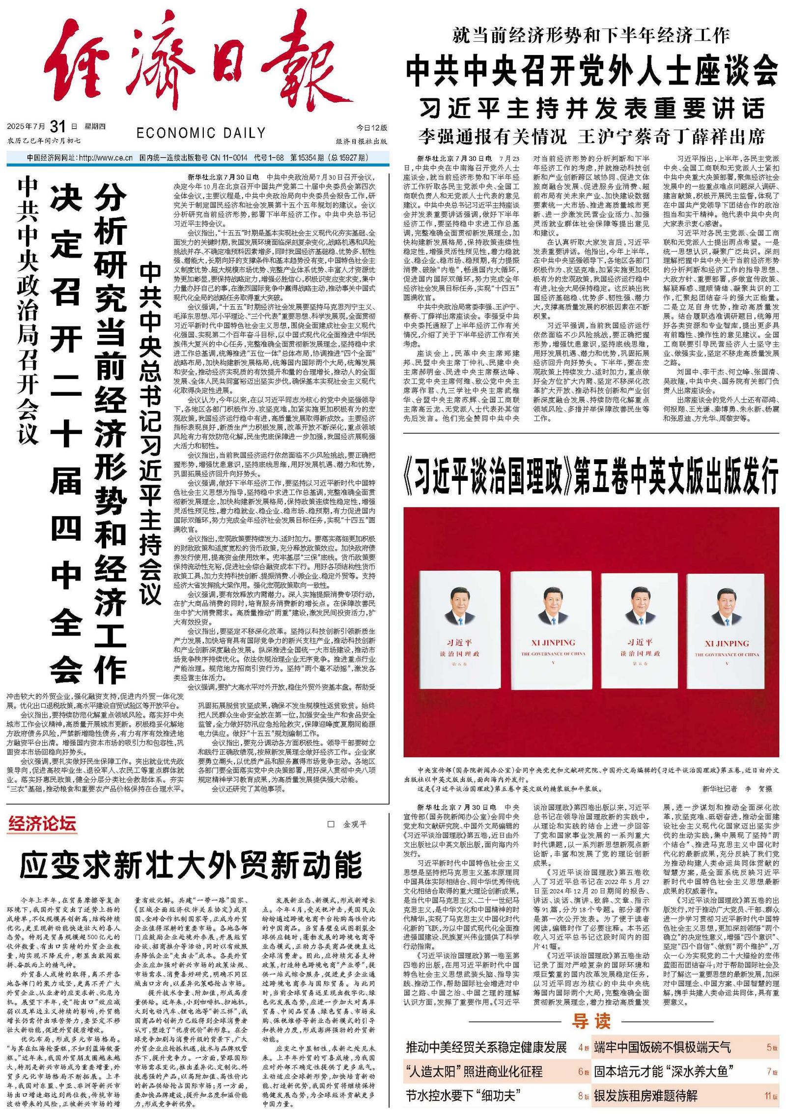 决定召开二十届四中全会 分析研究当前经济形势和经济工作