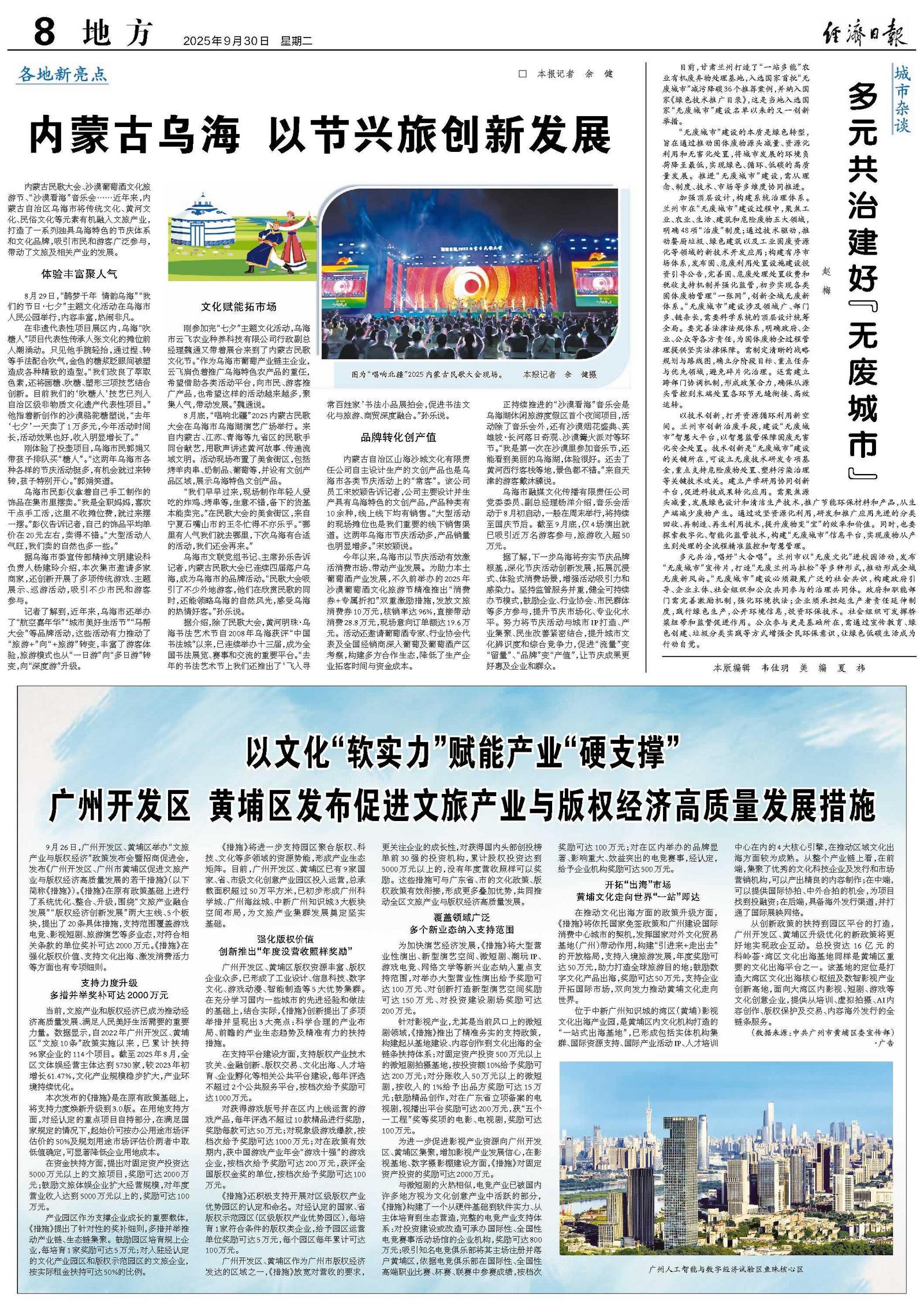 以文化“软实力”赋能产业“硬支撑” 广州开发区 黄埔区发布促进文旅产业与版权经济高质量发展措施