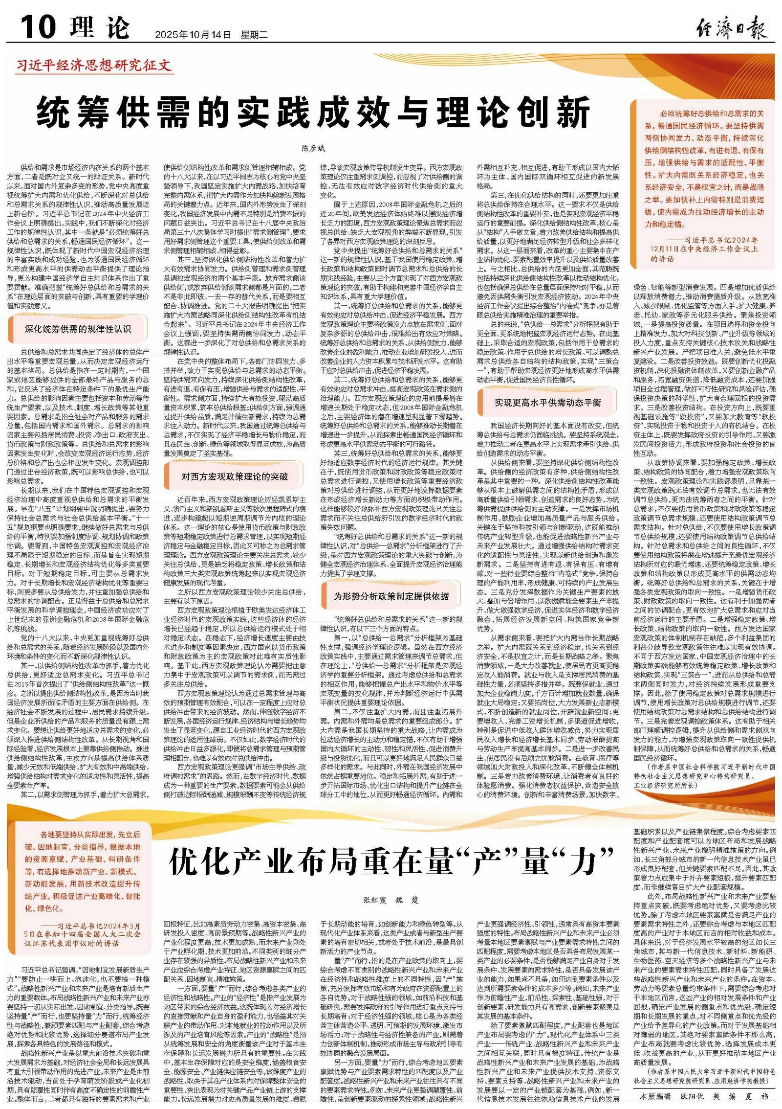 统筹供需的实践成效与理论创新