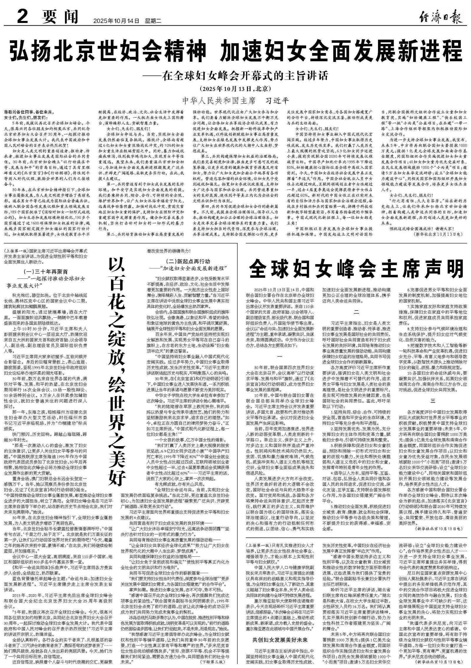 弘扬北京世妇会精神 加速妇女全面发展新进程