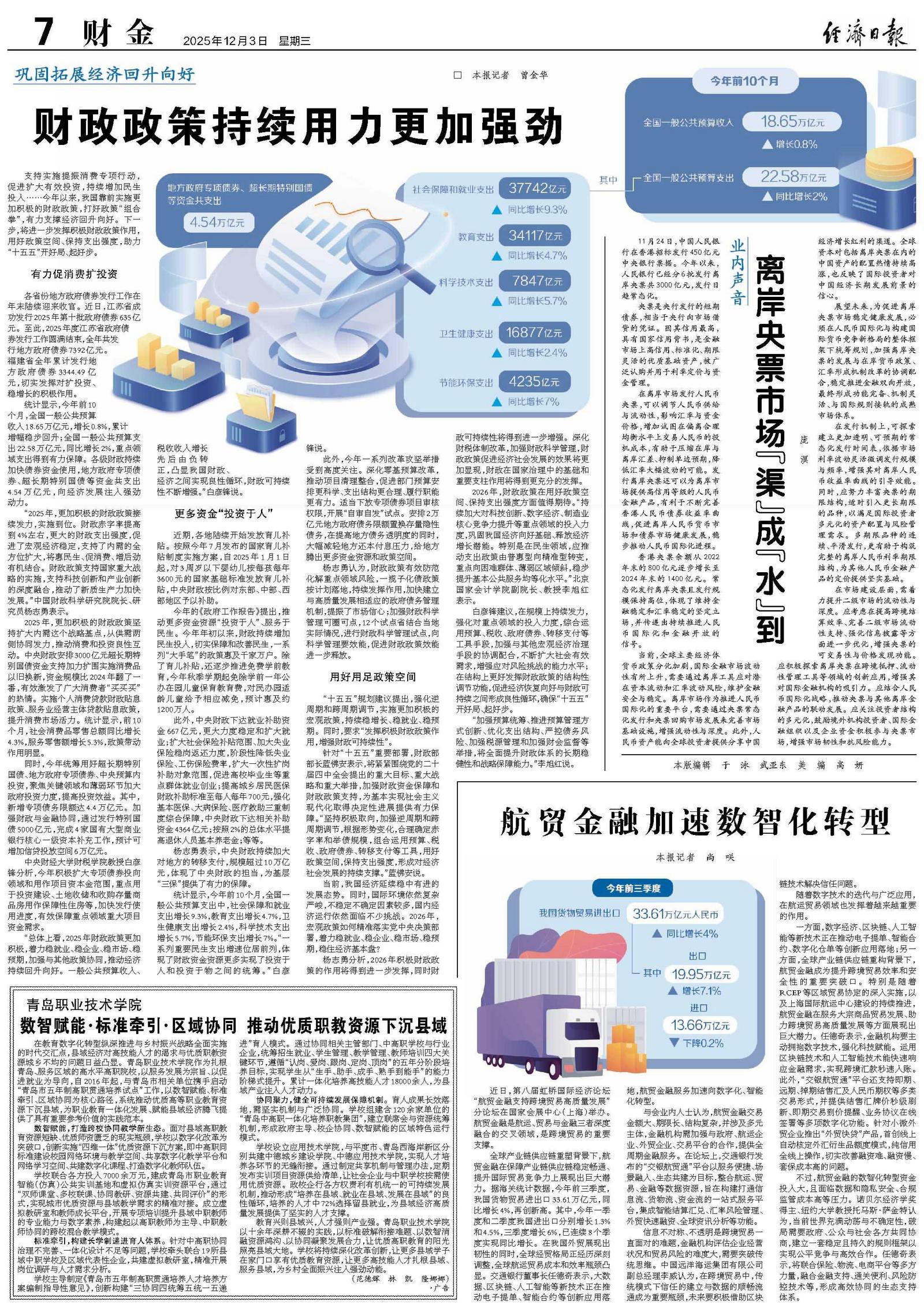 财政政策持续用力更加强劲