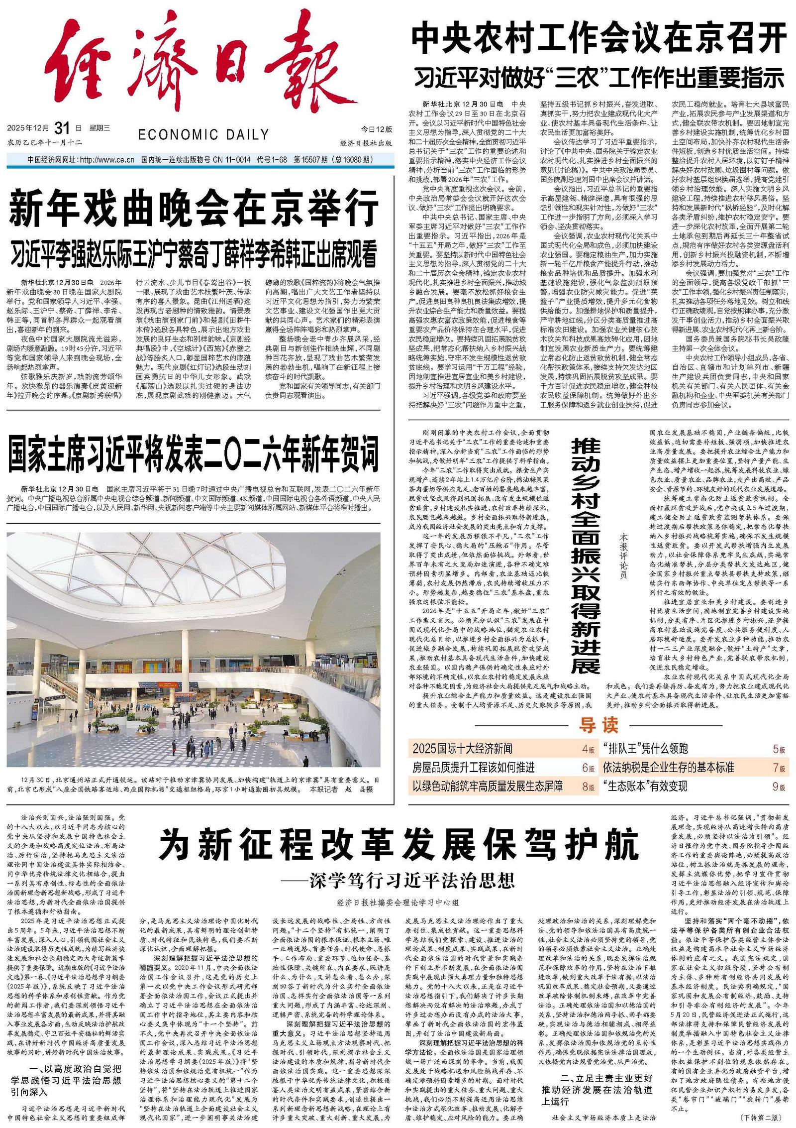 国家主席习近平将发表二〇二六年新年贺词