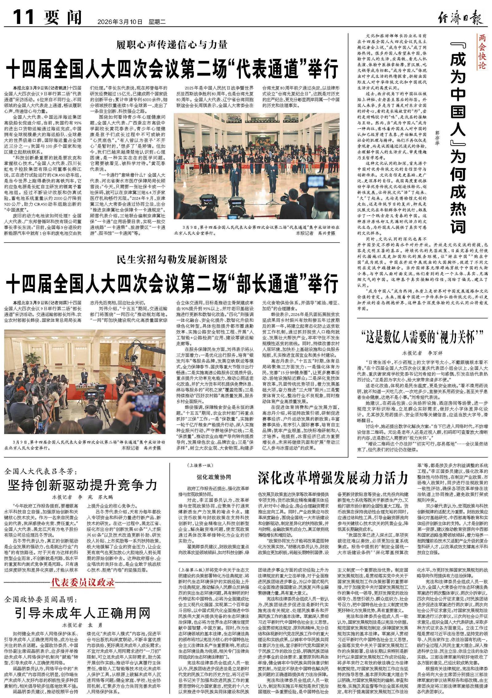 十四届全国人大四次会议第二场“代表通道”举行