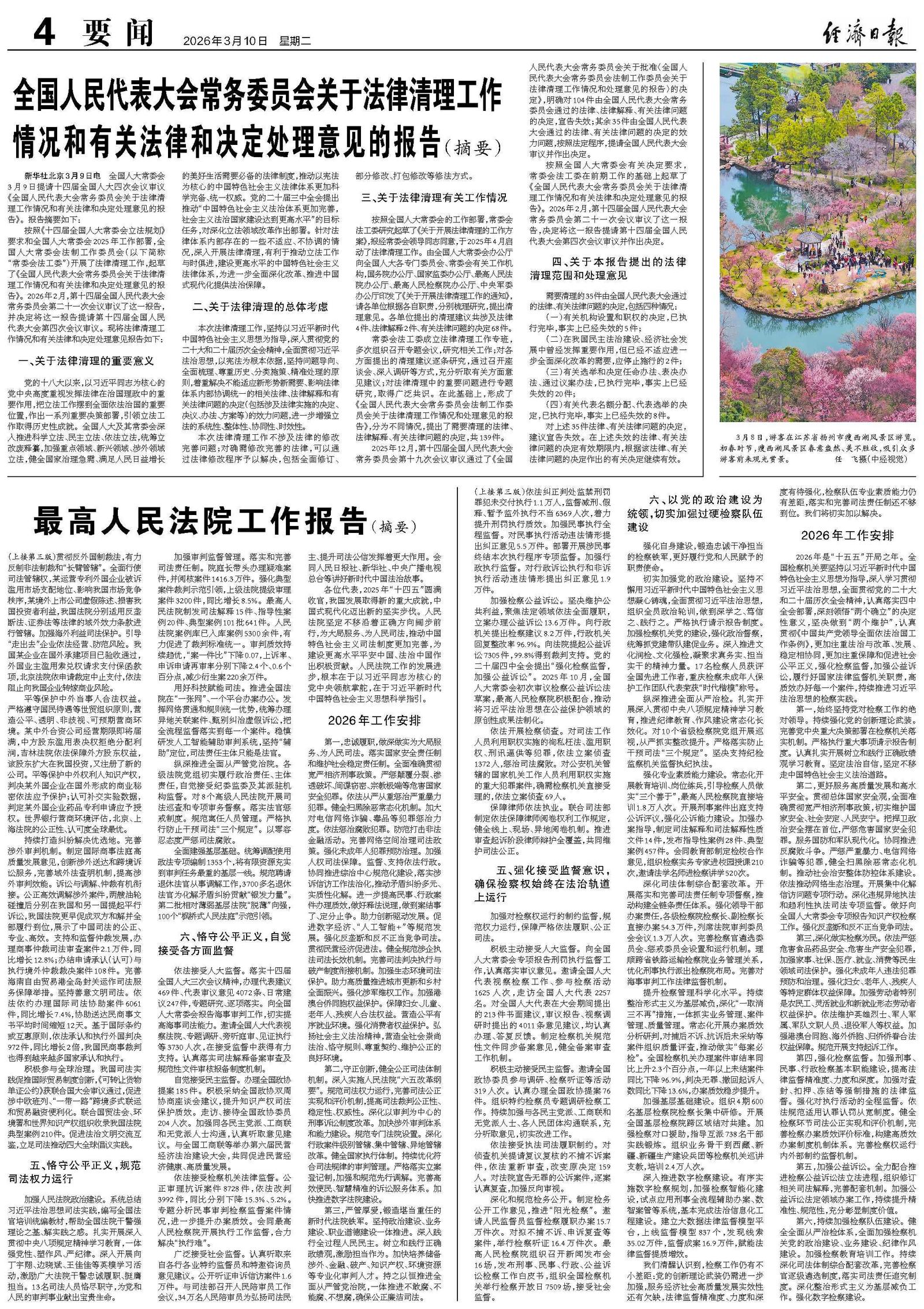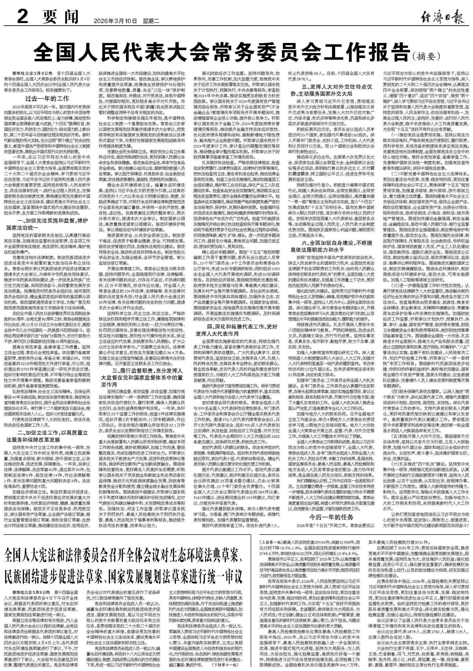 全国人民代表大会常务委员会工作报告(摘要)