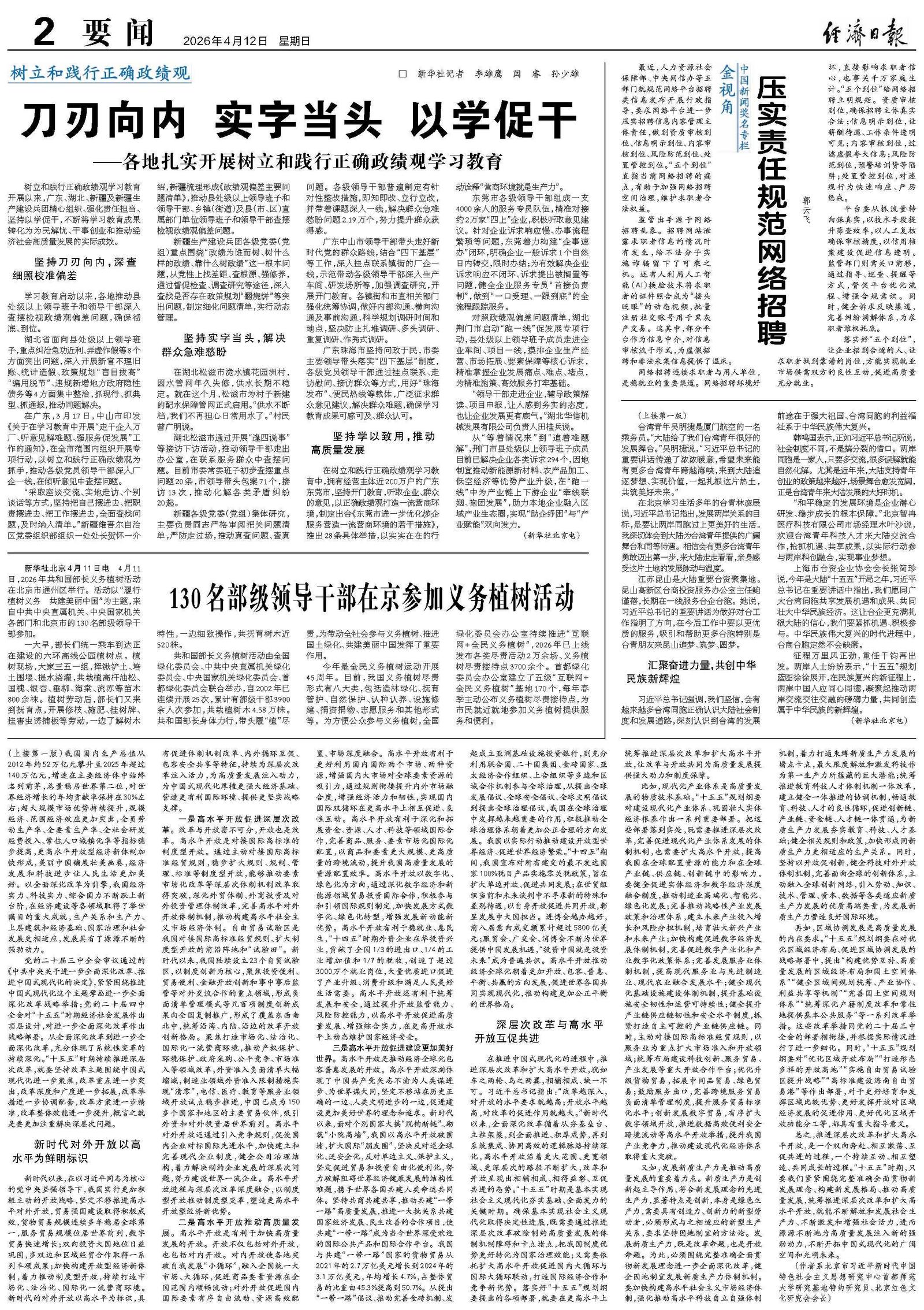 130名部级领导干部在京参加义务植树活动