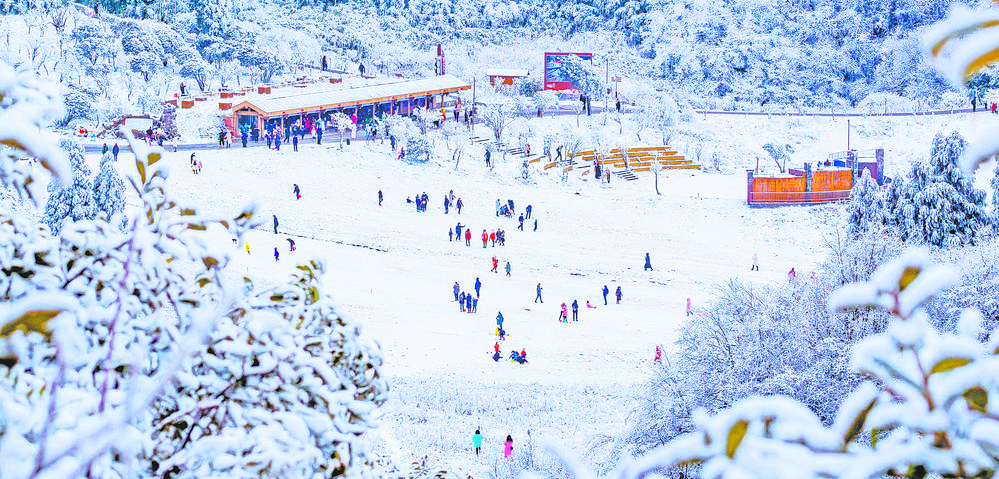 1月1日,游客在重庆市南川区金佛山景区戏雪迎新年。2021年元旦,有南国雪原之称的金佛山迎来降雪,吸引了众多游客前往赏雪玩雪,在欢声笑语中喜迎新年。