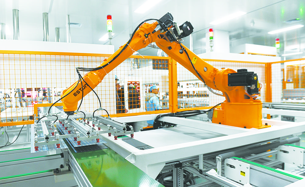 一月一日,江西赛维电源科技有限公司太阳能组件车间,工人坚守岗位,开足马力赶制订单。凌厚祥摄(中经视觉)