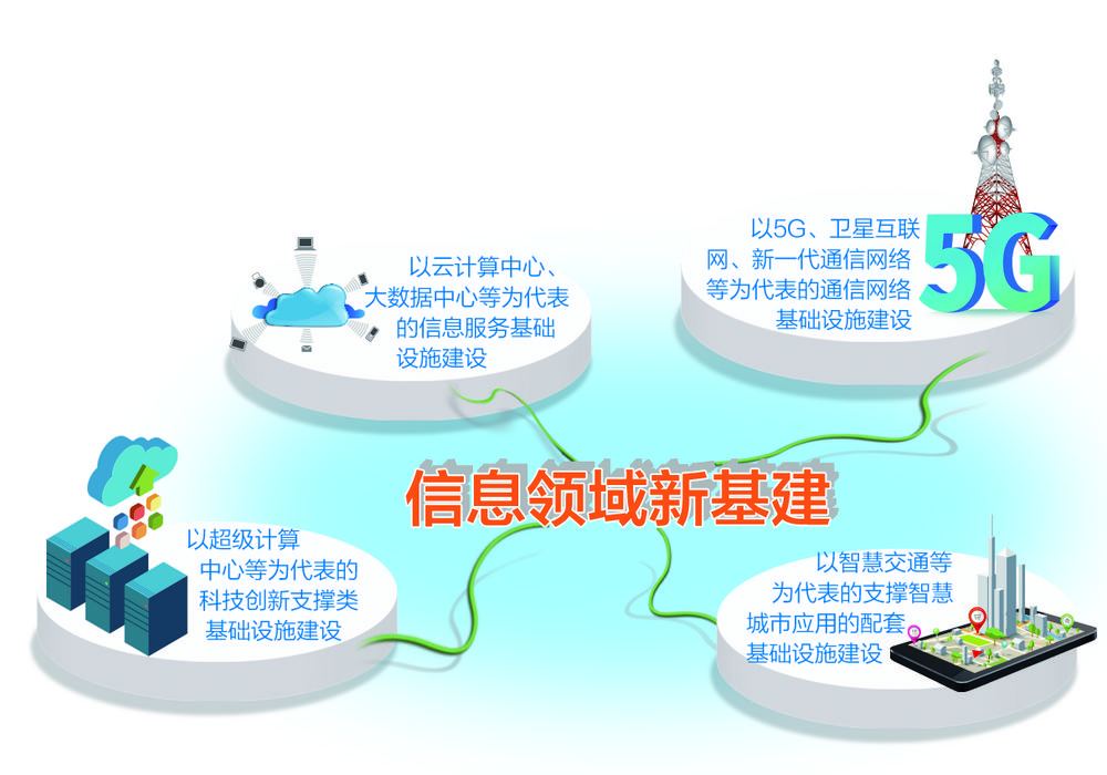 当前,我国正迎来新型基础设施建设热潮。与传统铁路、公路、机场、桥梁等的建设相比,新基建在我国有较大的发展空间,特别是信息领域新型基础设施的建设。信息领域新基建主要包括以下几类:以5G、卫星互联网、新一代通信网络等为代表的通信网络基础设施建设;以云计算中心、大数据中心、工业互联网服务平台、物联网服务平台等为代表的信息服务基础设施建设;以超级计算中心(算力中心、智能计算中心等)等为代表的科技创新支撑类基础设施建设;以智慧交通、智慧能源等为代表的支撑智慧城市应用的配套基础设施建设。