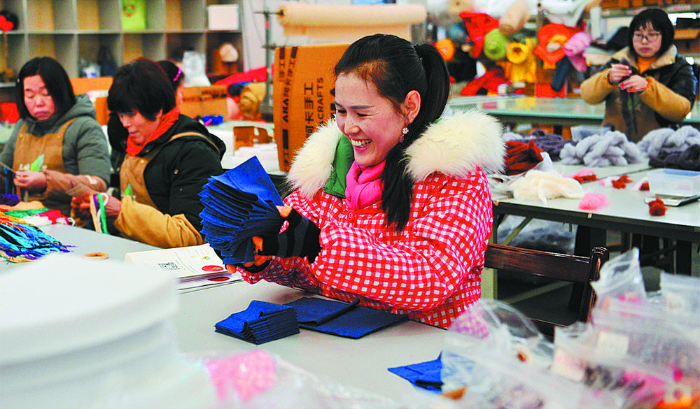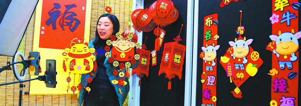 河北省南宫市凯睿毛毡制品有限公司,员工在网上销售节庆饰品。连日来,当地线上线下订单火爆,供销两旺。 赵永辉摄