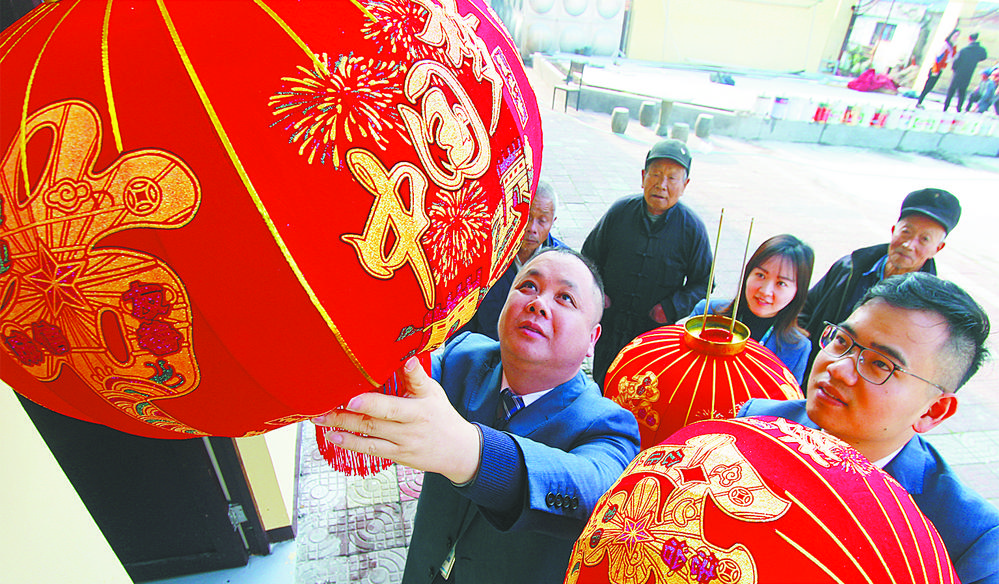新春到来之际,浙江省台州市路桥区农商银行横街支行职工来到敬老院慰问,为孤寡老人送上慰问品,并挂起大红灯笼,喜迎新年。 蒋友亲摄