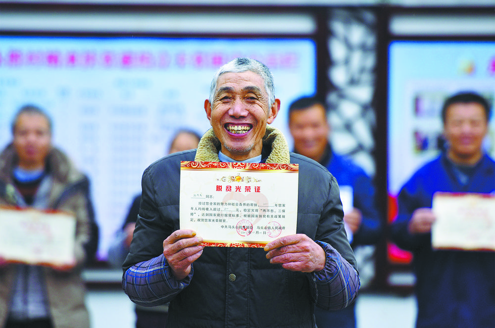 江西省资溪县马头山镇永胜村,67岁的江兴发拿着刚刚领到的脱贫光荣证拍照留念。近年来,永胜村通过发展特色产业,集体经济不断壮大,实现了全村整体脱贫。 吴志贵摄