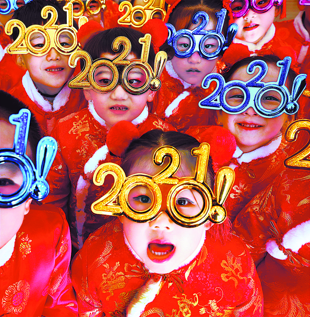 山东省枣庄市市中区文化路小学幼儿园,孩子们在欢声笑语中喜迎新年。 吉 喆摄