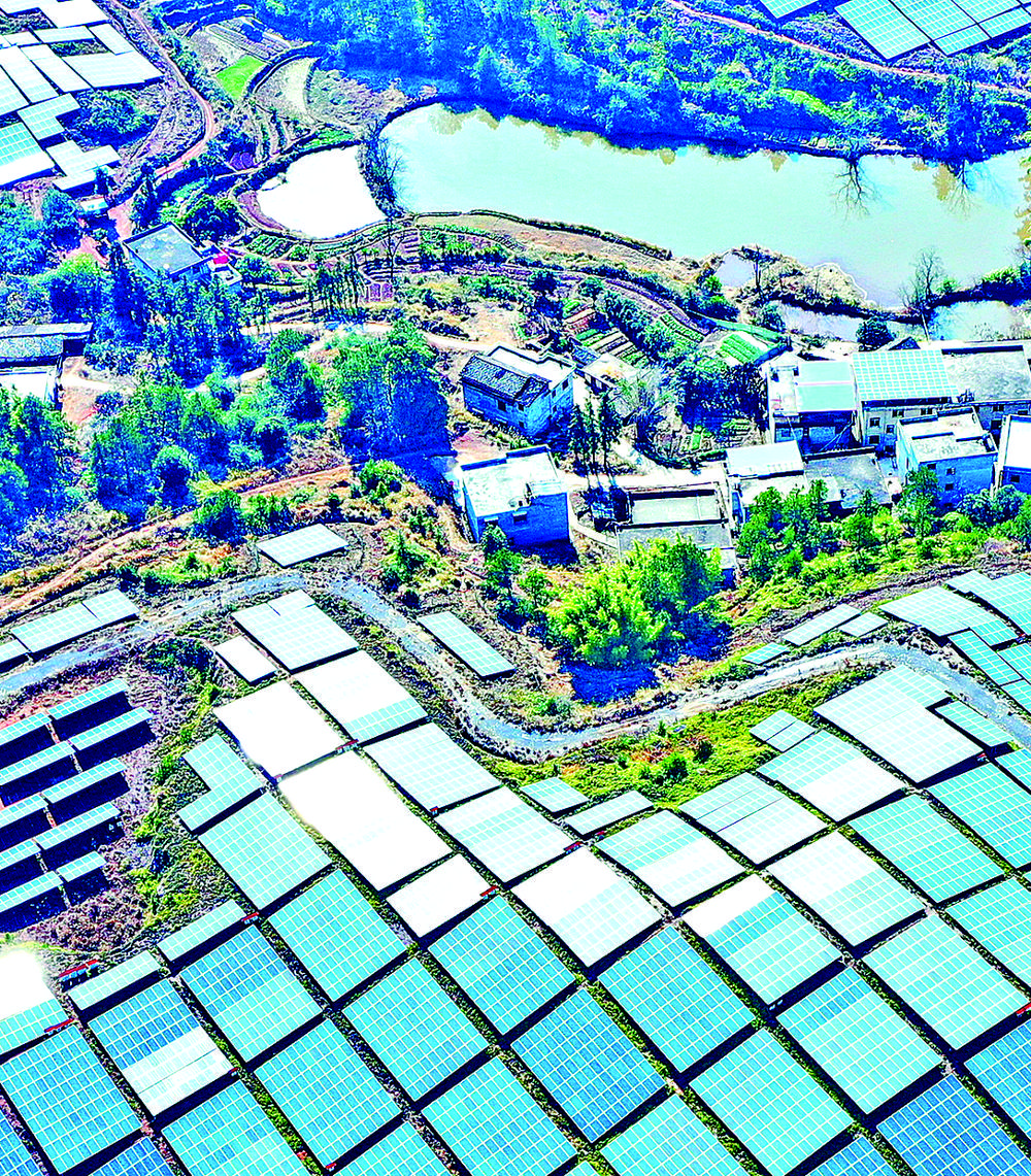 1月4日,江西省赣州市会昌县庄口镇黄沙村贫瘠荒山上的光伏扶贫电站熠熠生辉,鳞次栉比的蓝色光伏聚能板提供着绿色能源。近年来,会昌县因地制宜开发光伏发电载体资源,实现土地增产、企业增效、农民增收。朱海鹏摄(中经视觉)
