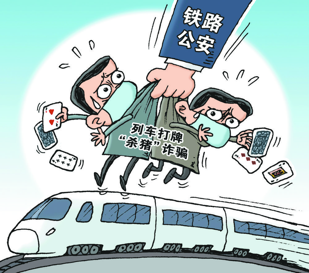 经过6个月走访调查,在公安部铁路公安局指挥下,近日,广州铁路公安局衡阳铁路公安处联合全国10余个铁路公安局统一收网,一举捣毁列车大型打牌“杀猪”诈骗团伙,抓获犯罪嫌疑人60余名。在此前侦查中,铁路民警发现,一批可疑人员在火车上装作互不相识,邀约他人打牌。起初,他们“娱乐”数额较小,让被骗旅客尝到甜头,紧接着,增加数额,通过比暗语、打手势、洗套牌等方式,合伙骗取旅客钱财,不少旅客身陷黑心“牌局”而不自知。这类骗局造成被骗旅客较大财产损失,危害铁路治安秩序。春节将至,旅客返乡务必小心防范,警惕各类旅途诈骗。(时 锋)