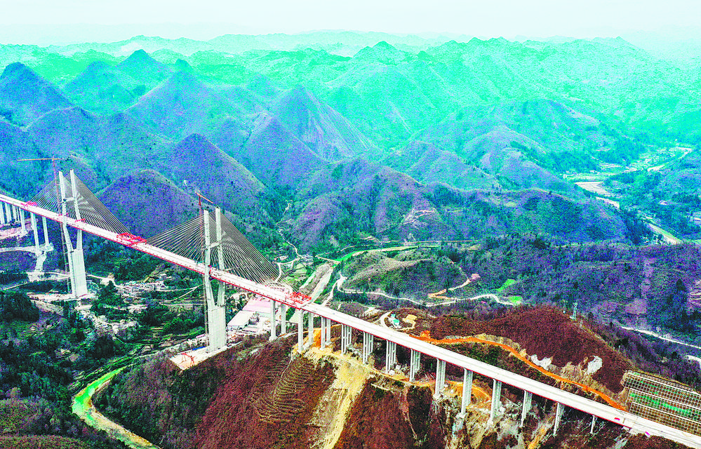 1月10日拍摄的贵州都安高速公路云雾大桥(无人机照片)。目前,由贵州桥梁集团承建的都(匀)安(顺)高速公路云雾大桥工程建设进展顺利。云雾大桥位于贵州省贵定县云雾镇,全长1720米,是都安高速公路控制性工程。
