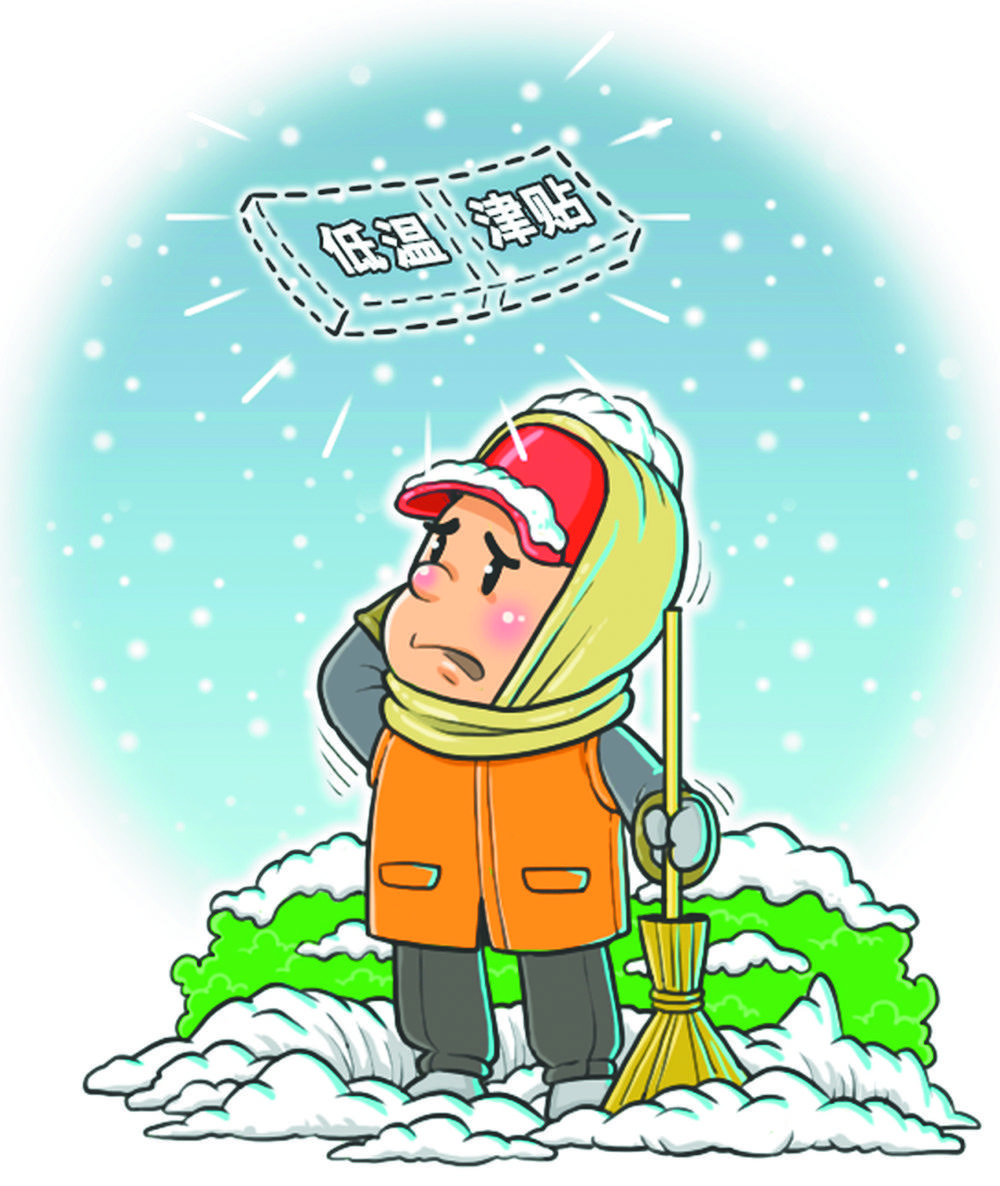 近日,北方多地气温创新低,让人们感受到这个冬天的寒意。但是,除了个别城市和少数群体享受到低温津贴外,不少户外劳动者的低温津贴仍未能得到落实。其实,2004年我国在《最低工资规定》中便明确提出低温津贴。纸上的权利为何落实难?专家认为,原因有3个:一是法规不够细致,落实没着落;二是我国幅员辽阔,各地情况不同;三是监督没有到位,全靠企业自觉。低温津贴的及时足额发放,需要社会方方面面一起努力。 (时 锋)