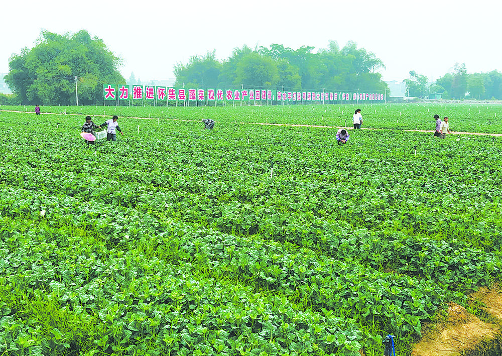 村民们在肇庆(怀集)绿色农副产品集散地采摘蔬菜。 本报记者 张建军摄