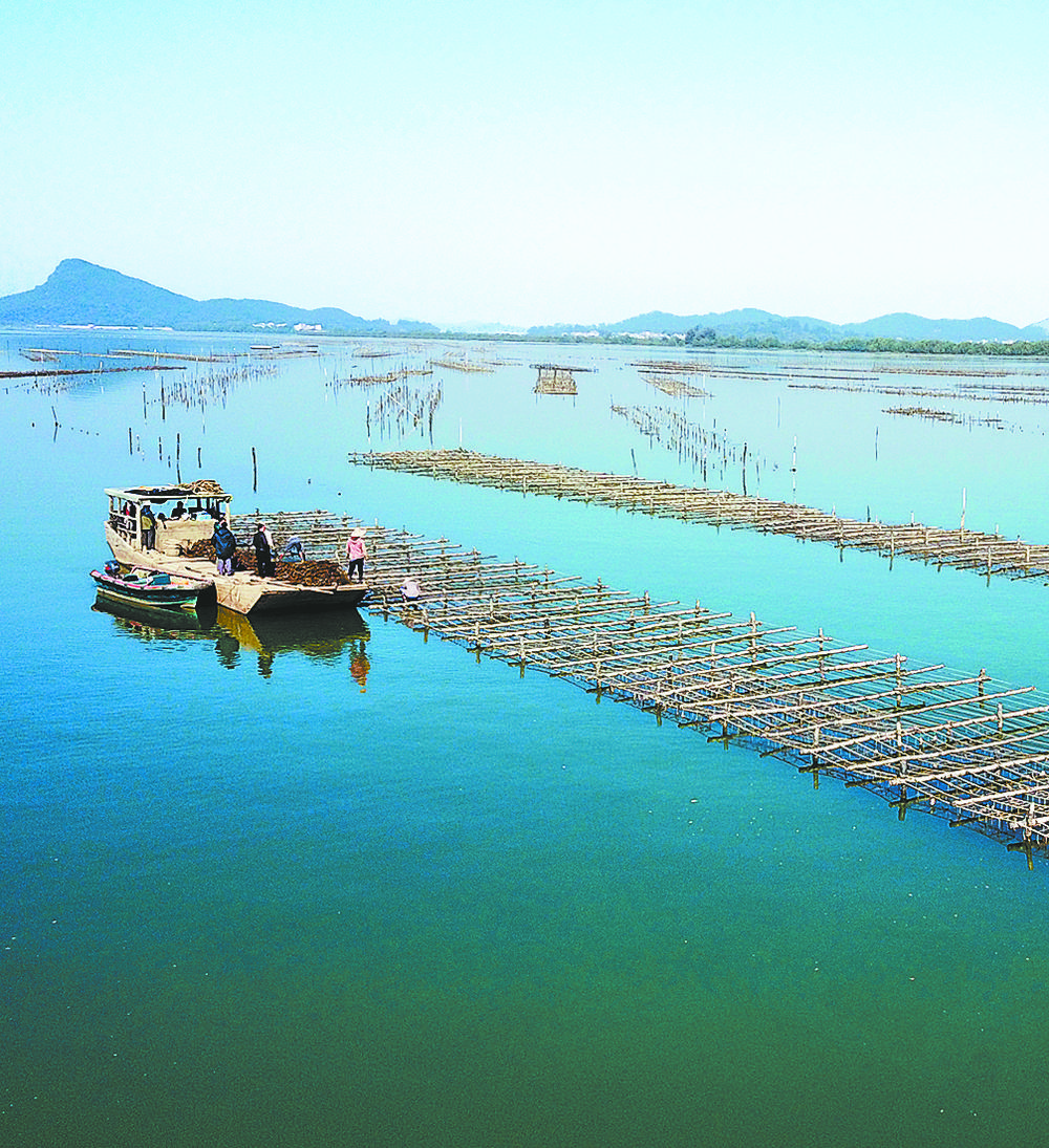 深冬时节,广东阳西县程村镇红光村生蚝养殖基地迎来收获高峰期。2020年,阳西县加快程村蚝省级现代农业产业园建设,养蚝海域面积达4.2万亩,年产量6.8万吨,产值约4.6亿元,产业园范围内农村居民人均年纯收入达1.82万元。 新华社记者 黄国保摄