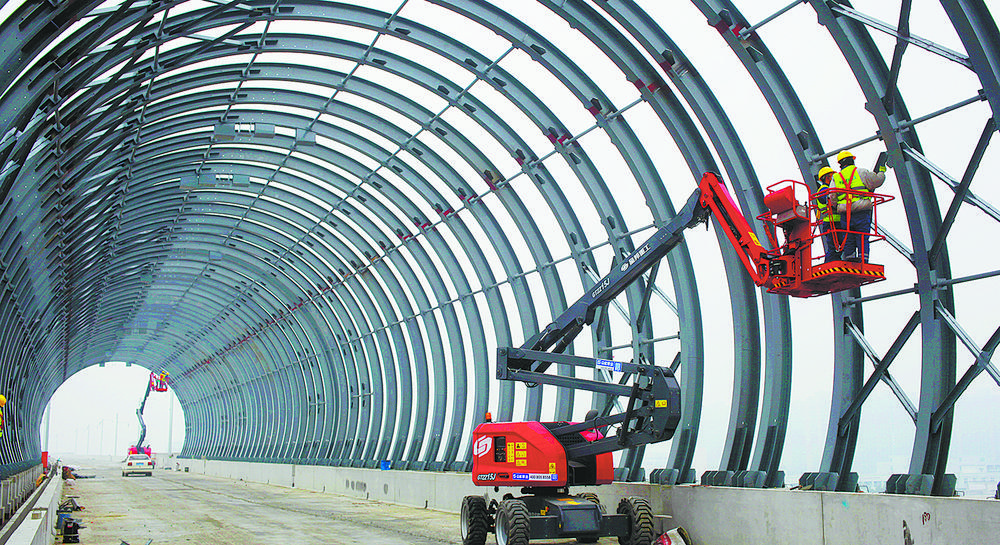 1月20日,杭绍台铁路浙江省台州市路桥区螺洋街道路段,工人们正在开展隔音隧道安装作业。杭绍台城际铁路是我国首条民营资本控股的高铁PPP项目,计划于2021年年底前建成通车。蒋友亲摄(中经视觉)