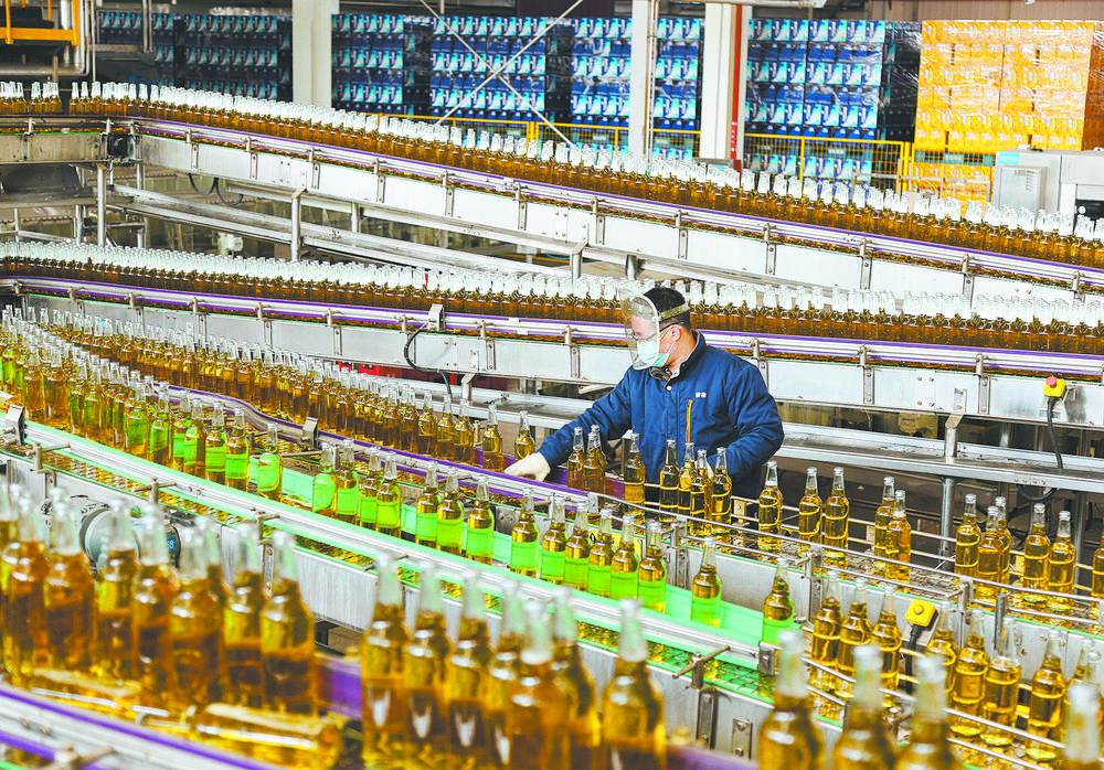 近日,华润雪花啤酒组织员工加紧生产,以供应节日市场。