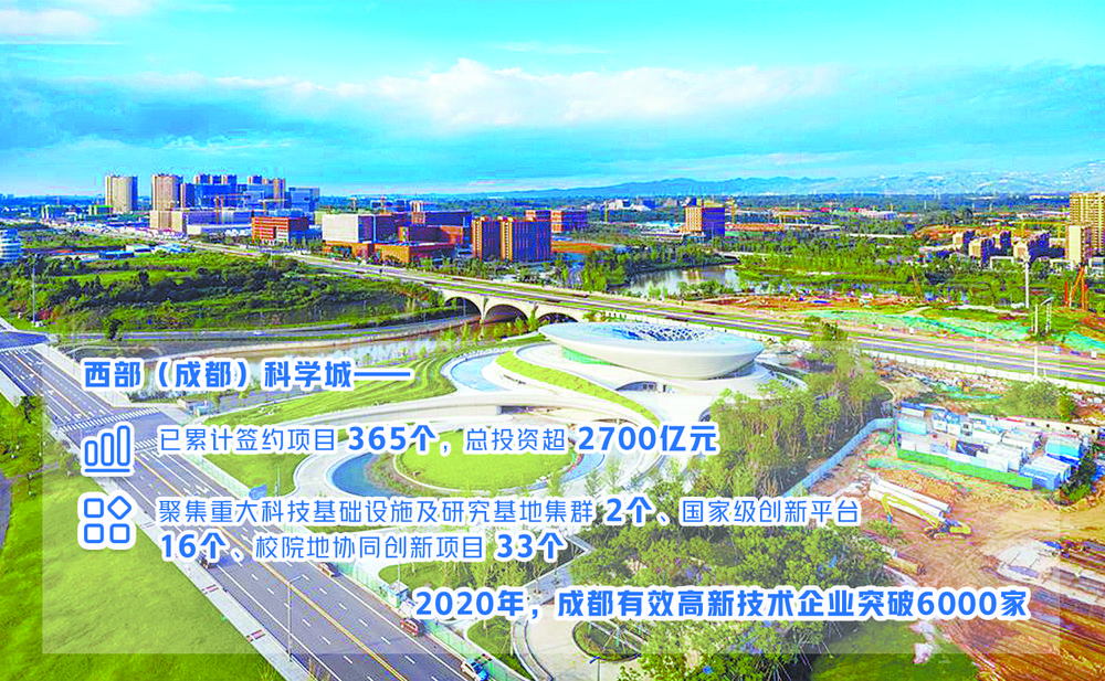 随着成渝地区双城经济圈建设持续深化,西部(成都)科学城迎来更大的发展机遇。2020年4月14日,四川省科技厅、重庆市科技局签署协议,明确提出川渝两地将以“一城多园”模式合作共建西部科学城,依托西部科学城共同推进综合性国家科学中心建设,构建成渝协同创新共同体。“一城”指西部科学城,“多园”指两地的国家高新区、国家级和省级新区等创新资源集聚载体。