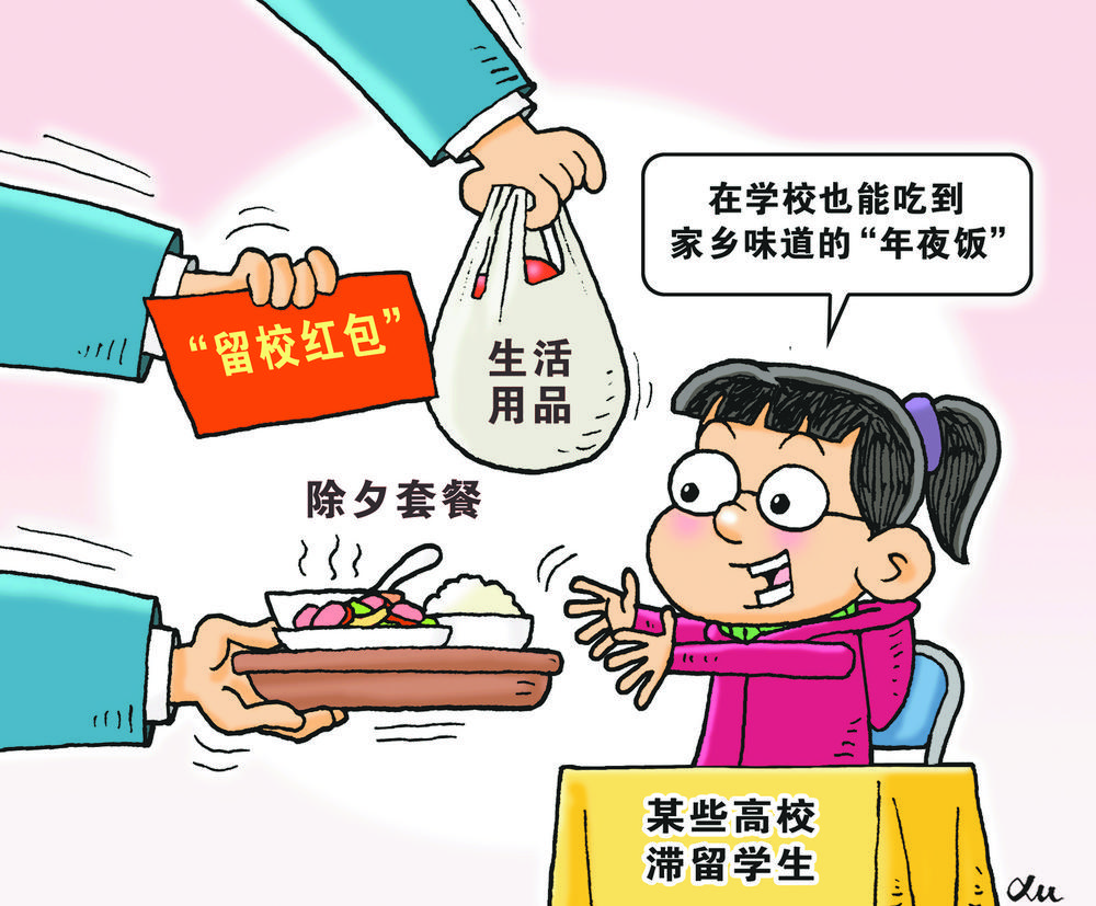 近日,多地出现散发病例和聚集性疫情,很多省份倡议就地过年。目前,多数低风险地区的高校已提前放假并延长假期,部分学校允许家在中高风险地区的学生留校,实行集中管理。而对于个别学生返乡遇到的困难,相关部门也积极出台措施予以帮助。有的学校不定期地为留校学生送牛奶、水果、药品等生活用品,并准备了“留校红包”作为新春祝福。期待各地高校都能积极做好相关保障工作,让返乡遇到困难的学生在学校里也能过一个暖心而充实的春节。(时 锋)