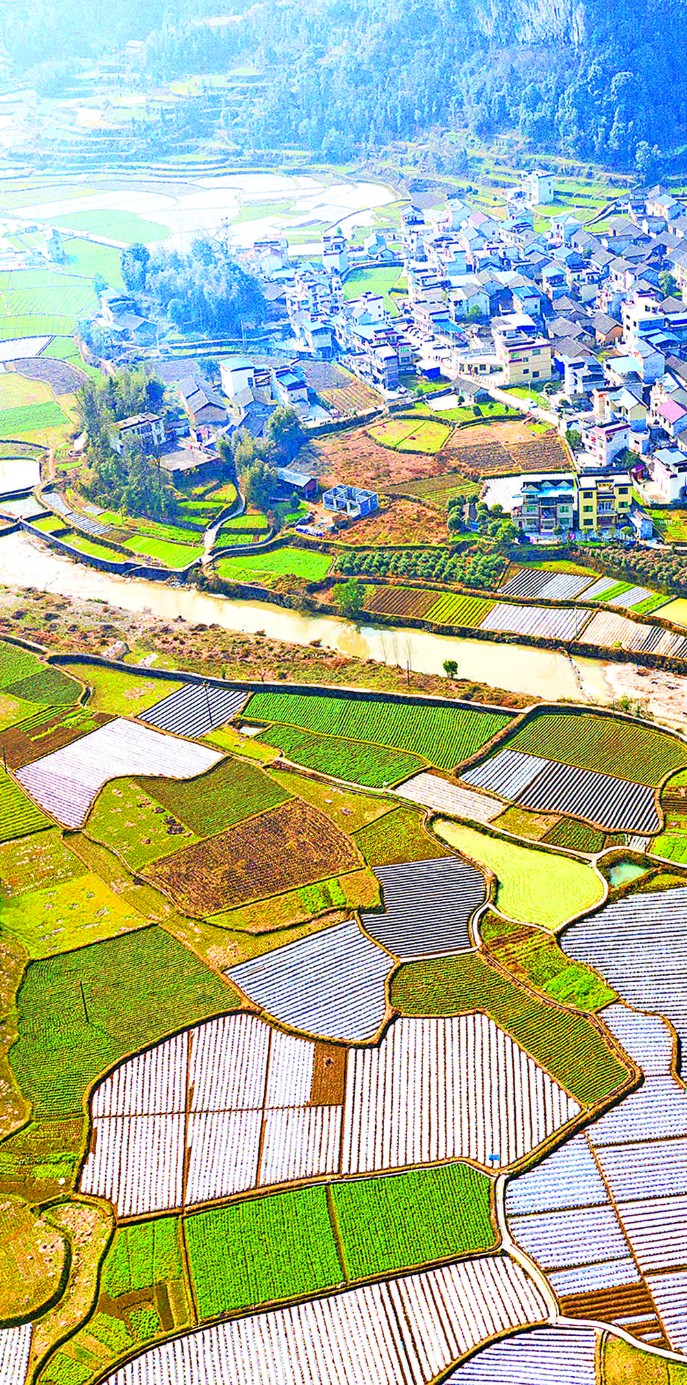 1月28日,湖南省湘西土家族苗族自治州吉首市乾州街道西门口村的田野上种满了各种作物,犹如斑斓的调色板。吉首市积极探索巩固拓展脱贫攻坚成果与乡村振兴有效衔接的途径,大力发展黄金茶、白云贡米、金秋梨、黑木耳、丹青泡椒等绿色产业,推进当地乡村振兴实现良好开局。