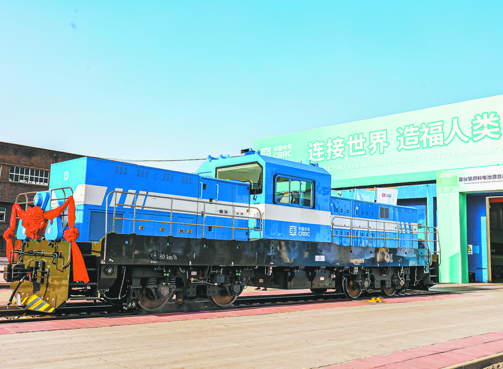 1月27日,我国自主研发的首台氢燃料混合动力机车,在中车大同电力机车有限公司成功下线。此次下线的氢燃料混合动力机车设计时速达到80公里,满载氢气可单机连续运行24.5小时。 毕思聪摄