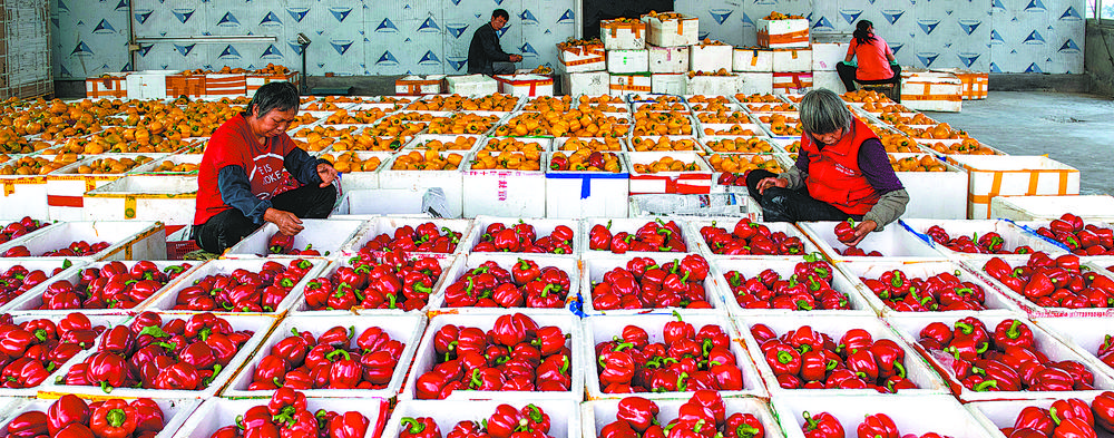 1月27日,位于广州市白云区钟落潭镇米岗村的广州市绿康农业发展有限公司有机蔬菜基地内,160多亩无土栽培甜椒陆续成熟,村民忙着采收、分拣、装箱,供应粤港澳市场。 邱新生摄(中经视觉)