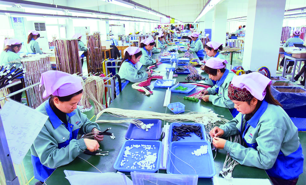 2月1日,河南项城腾龙电子厂的工人在生产电器专用配套线束。腾龙电子产品供应松下、格力、东芝等企业,远销日本、韩国,年产值达5000多万元,吸纳了大量当地农村富余劳动力。项城围绕“六稳”“六保”,不断优化营商环境,为企业发展提供优质服务,取得了企业发展壮大、居民收入增加的良好成效。