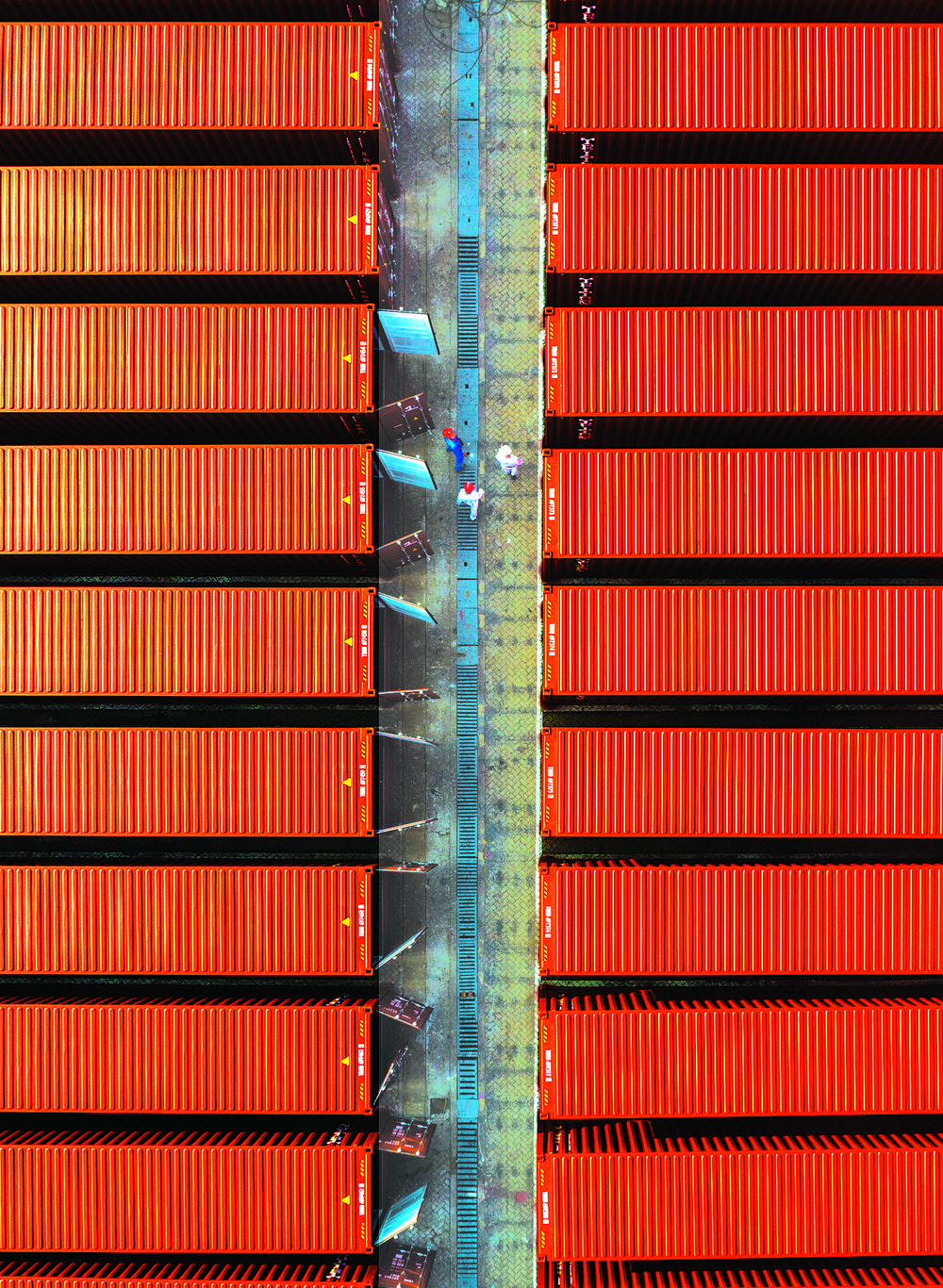 2月2日,在广东省广州市南沙区万顷沙镇东方国际集装箱(广州)有限公司内,员工在为集装箱喷涂、检测、装船。今年以来,集装箱市场需求大增,该公司抢抓市场机遇赶订单,业绩稳步增长。邱新生摄(中经视觉)