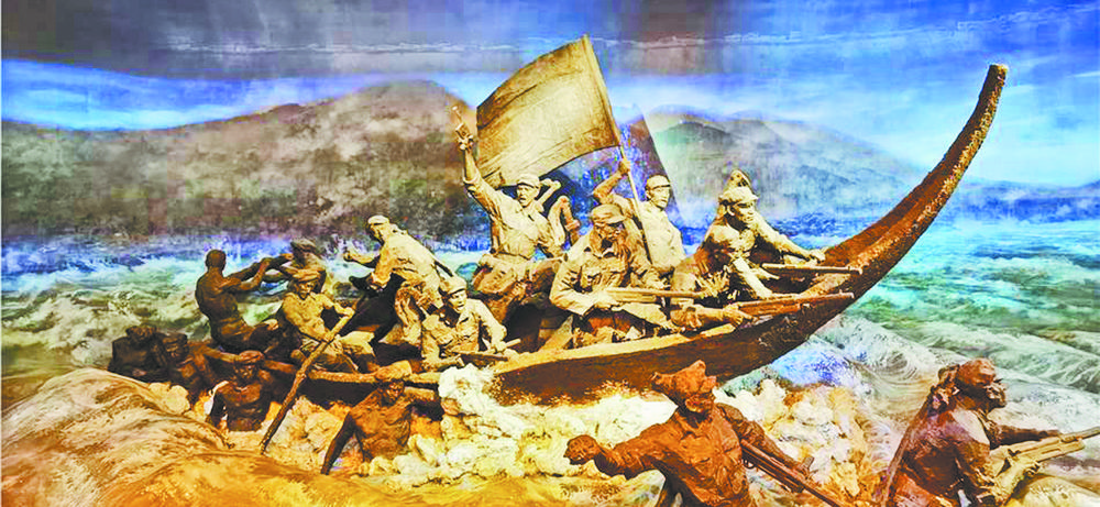 5月的大渡河已进入汛期,河面宽达300多米,河水拍打着密布巨大岩石的河床,发出轰隆隆的怒吼声。25日清晨,在刘伯承、聂荣臻亲自指挥下,红一团一营营长孙继先率领 17名勇士乘坐一只小舟劈波斩浪,冒着枪林弹雨冲向敌阵,成功强渡大渡河,为红军打开一条通向胜利的道路。
