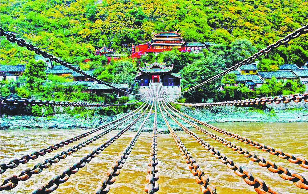 硝烟散去的泸定桥,如今既是泸定县城百姓往来大渡河东西两岸的通道,也是红色旅游的重要景点。虽已铺上木板,但人走在桥上时,桥身左右大幅摇摆,难以站立,桥下激流轰鸣,令人惊惧。