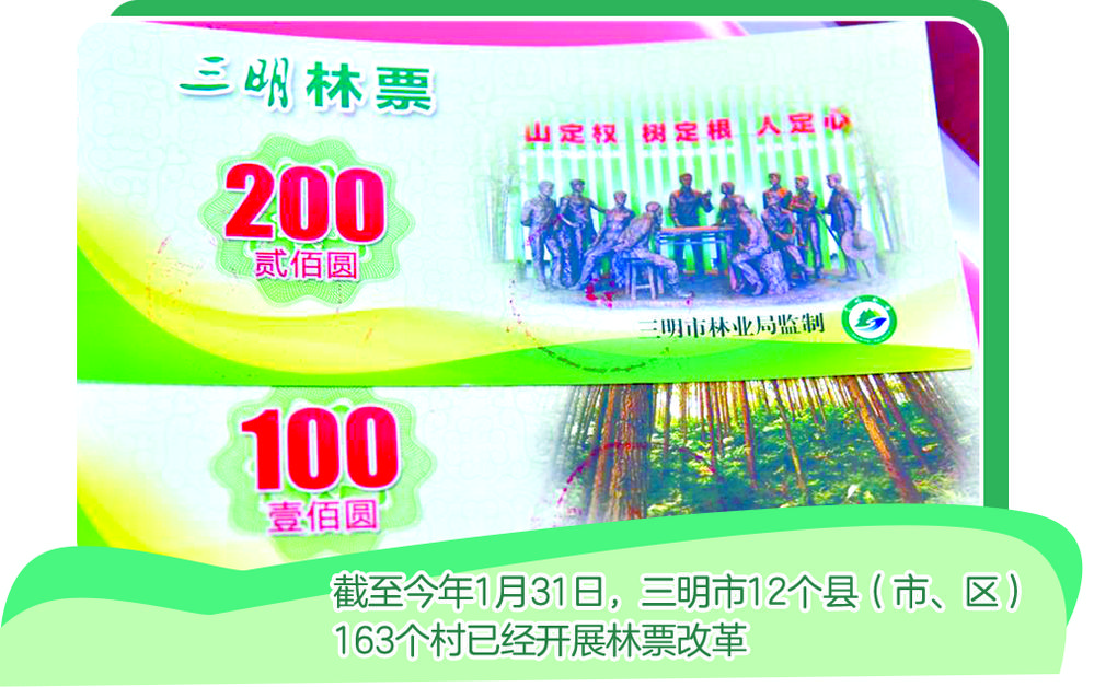 2019年底,梨树村成为三明市“林票制”首批试点,经评估确定梨树村现有林木价值为130万元,以林票形式发放到村民手中,其中村民占比70%,村集体占30%。