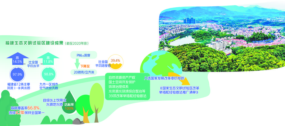 生态环境“高颜值”和经济发展“高素质”协同并进,福建也成为全国唯一的保持水、大气、生态环境全优的省份……一系列生态文明建设成果,体现了福建这块“试验田”把生态文明建设落实和贯穿在全方位推动高质量发展的全过程、各领域。