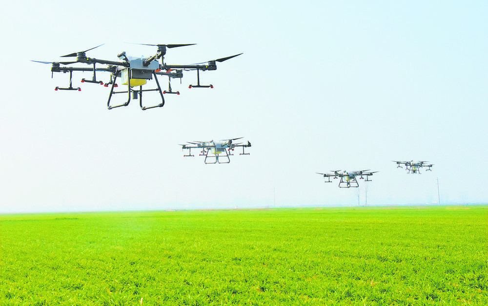 2月4日,河南省周口市秣陵镇的麦田无人机在作业中。近年来,当地抓好农业集约化、规模化、科技化,种粮大户、家庭农场、专业合作社蓬勃发展,农业新技术得以快速推广,粮食产量保持连年增加,农民收入实现持续提升。任新军摄(中经视觉)