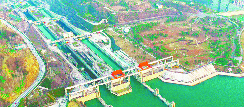 上图 2月5日,货轮正在通过三峡大坝五级船闸过闸,各地抢在三峡大坝、葛洲坝船闸检修及单向运行前储备足够的春耕备耕和工业生产物资。黄善军摄(中经视觉)