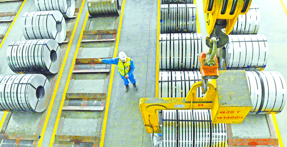 上图 2月8日,位于江苏省无锡市惠山区前洲街道的大明金属制品无锡有限公司,工人忙着发运碳钢产品。临近春节,无锡市惠山辖区内的钢铁加工配套企业铆足干劲,力争实现新春开门红。 杨木军摄(中经视觉)