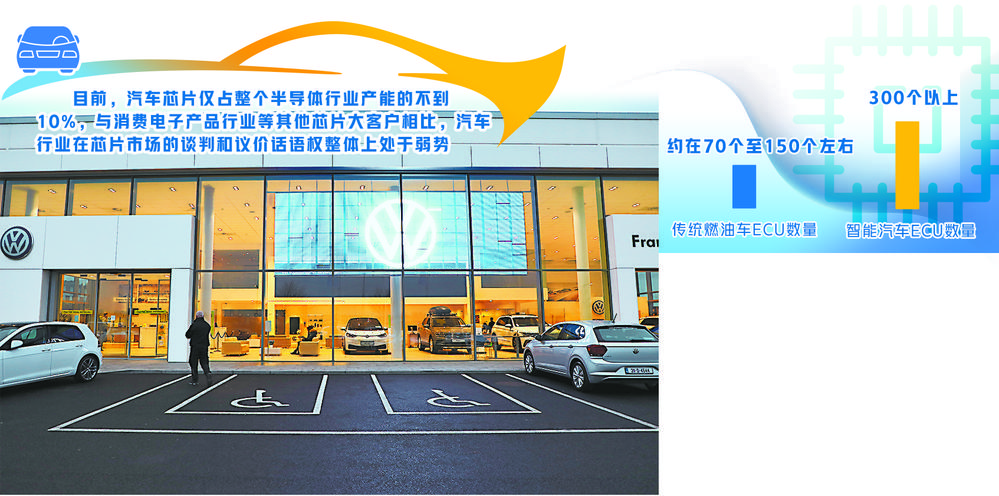 为什么芯片对汽车行业如此重要?专家指出,现在芯片在汽车行业中的地位已经不亚于发动机等汽车传统核心零部件。当今的汽车高度依赖电子设备,芯片作为电子设备的核心,发挥了愈发重要的作用。一辆传统燃油车所需的电子控制单元(ECU)数量大约在70个至150个左右,而智能汽车的ECU数量已经达到300个以上。未来汽车对ECU的需求会进一步提高,这决定了汽车行业对芯片半导体行业产能的高度依赖仍将持续下去。