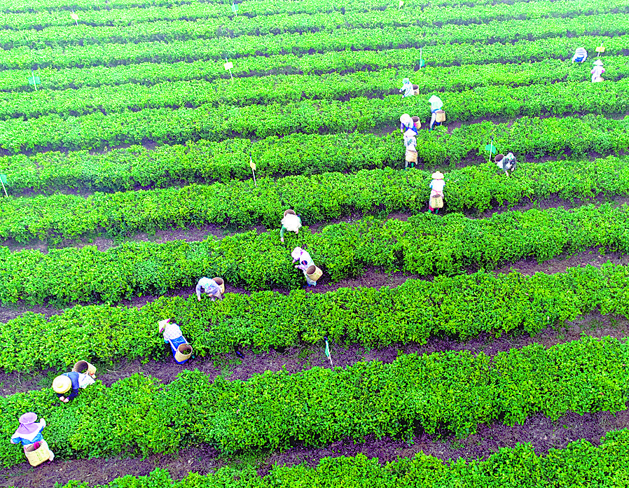 2月7日,茶农在海南省白沙黎族自治县五里路茶叶专业合作社的有机茶园采茶。近日,当地有机茶园迎来春茶采摘期,茶农抢抓农时采摘茶叶。 新华社记者 杨冠宇摄