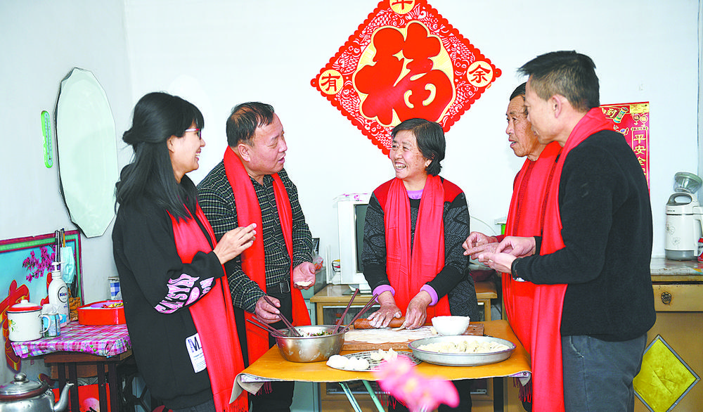 “同志们,过大年喽,吃年夜饭啰!”站在食堂门口,项目党支部副书记杜重宁满脸笑容地招呼着工友们,把橘子、糖果一股脑往桌上堆。