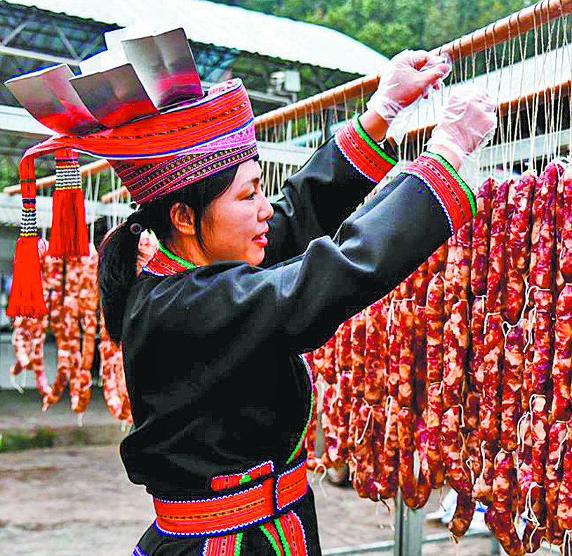 图③ 广西金秀瑶族自治县大岭村腊味飘香。